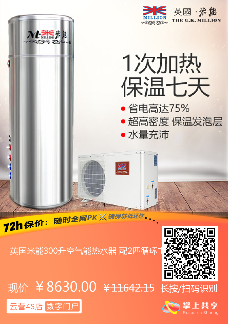 英国米能300升空气能热水器 配2匹循环主机