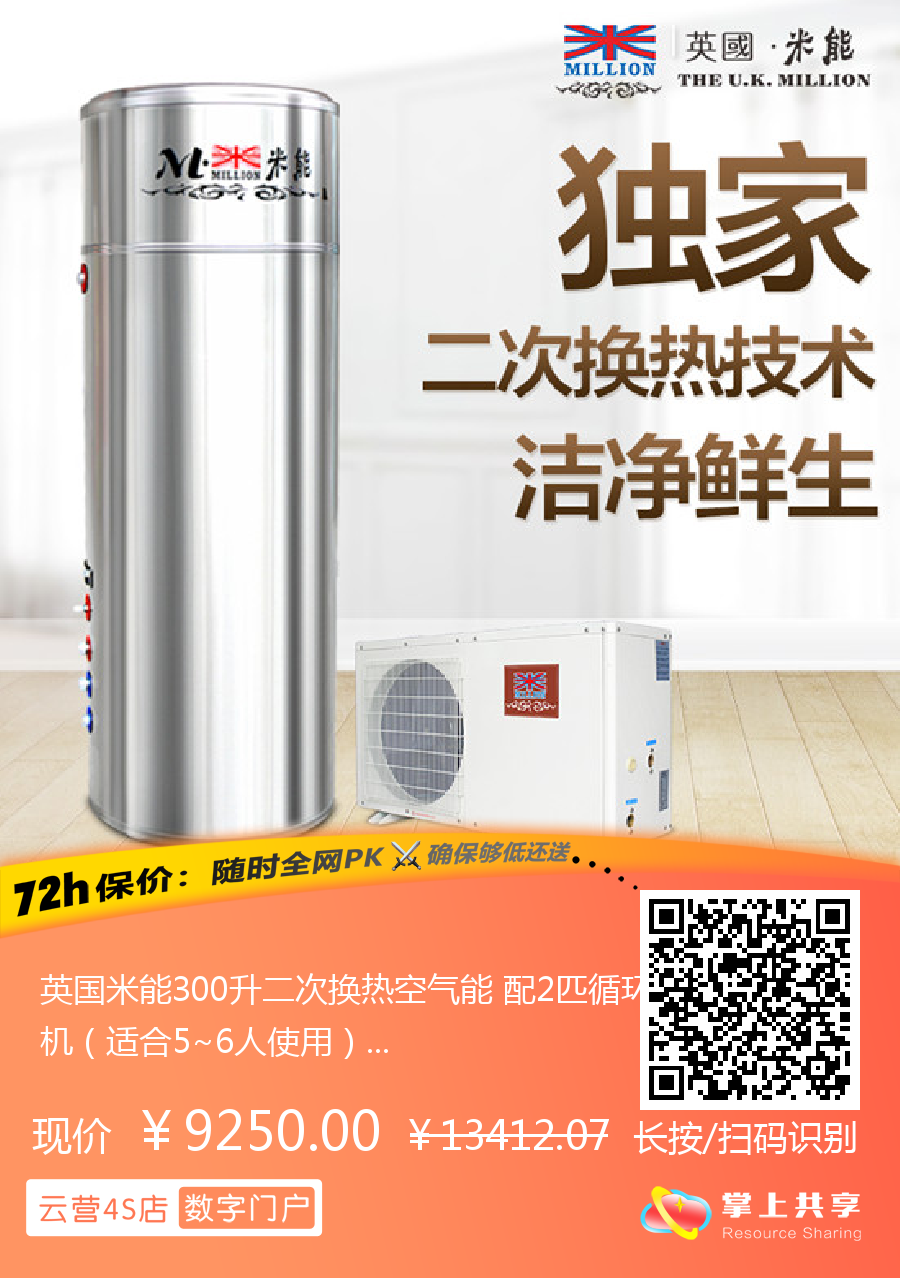 英国米能300升二次换热空气能 配2匹循环主机(适合5~6人使用)