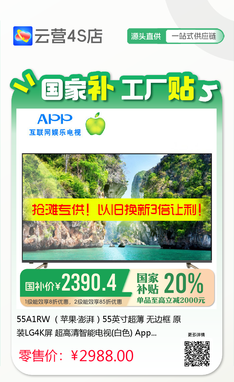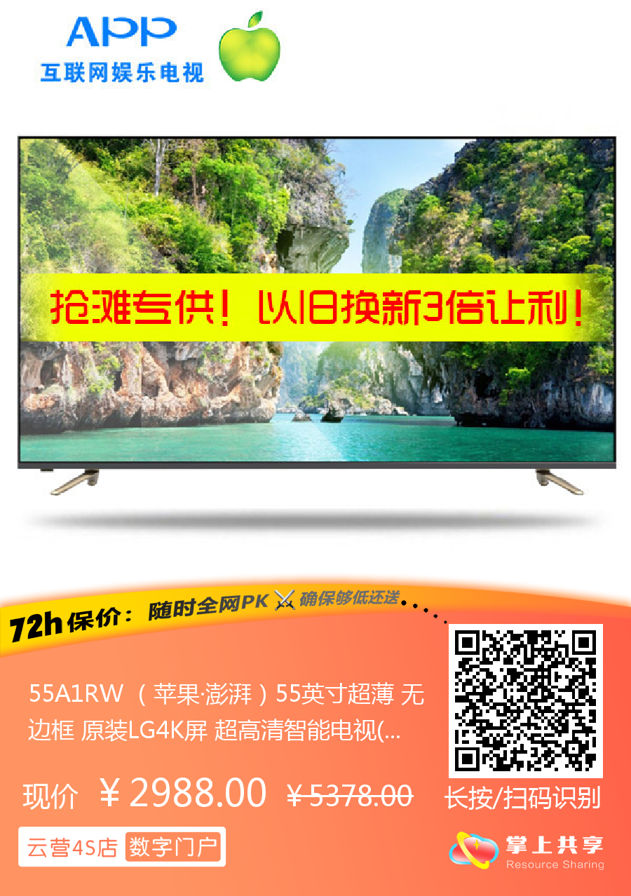 55A1RW (苹果·澎湃)55英寸超薄 无边框 原装LG4K屏 超高清智能电视(白色) App