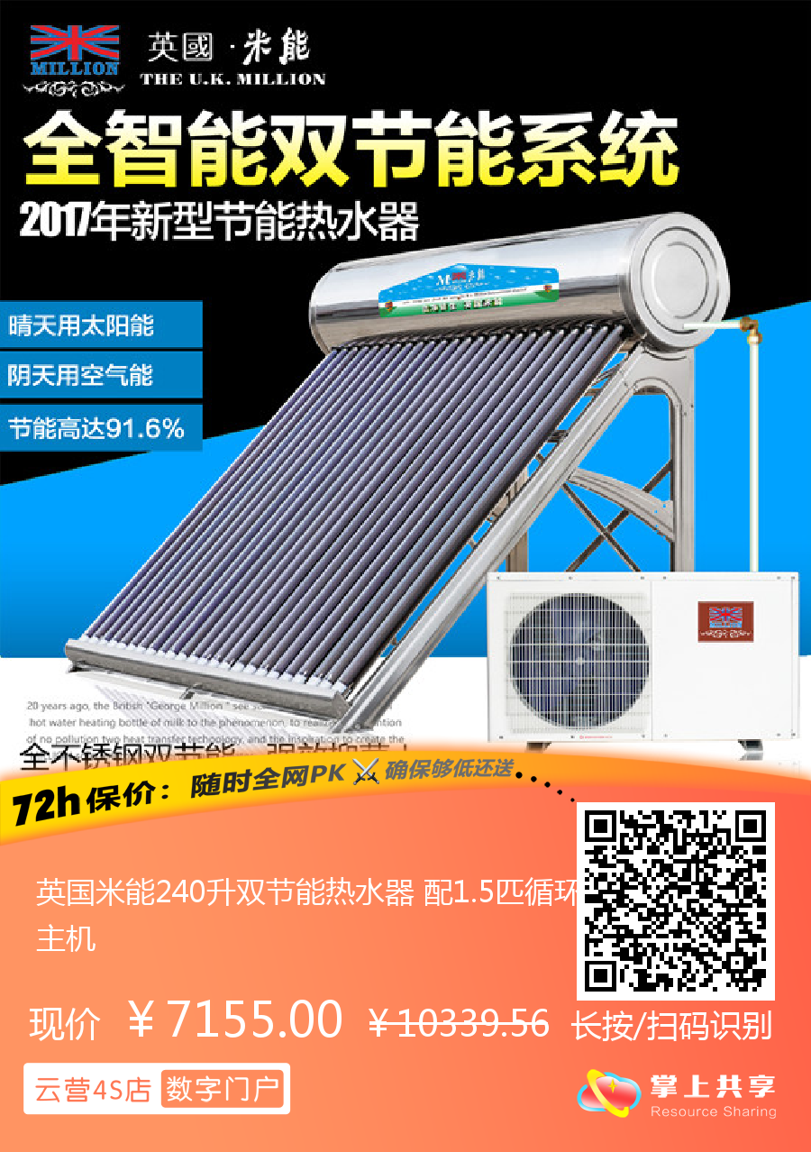 英国米能240升双节能热水器 配1.5匹循环主机