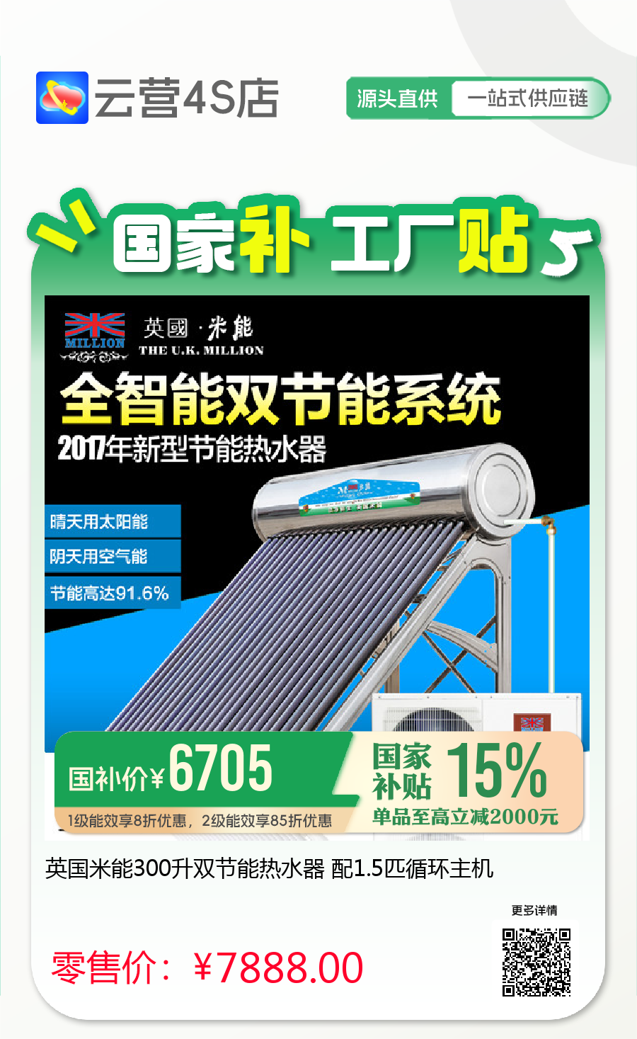 英国米能300升双节能热水器 配1.5匹循环主机