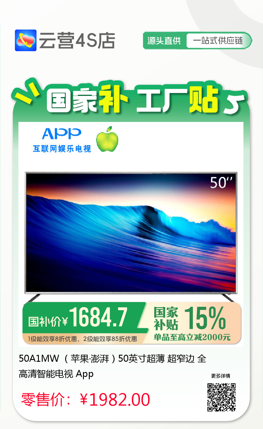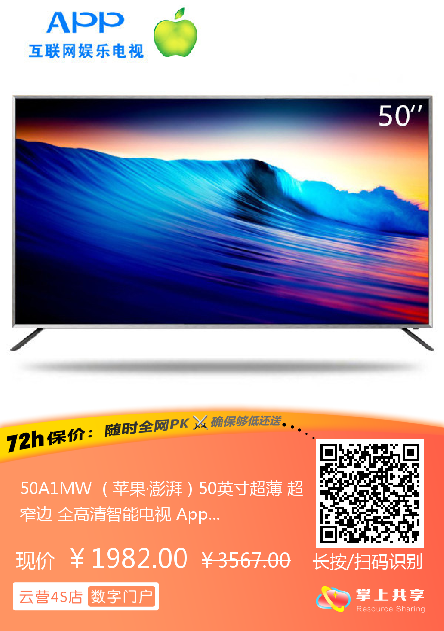 50A1MW (苹果·澎湃)50英寸超薄 超窄边 全高清智能电视 App