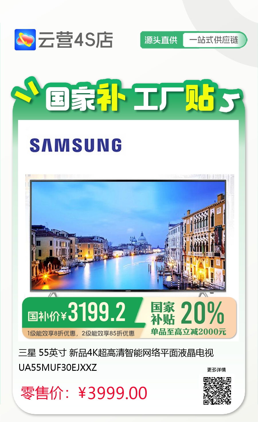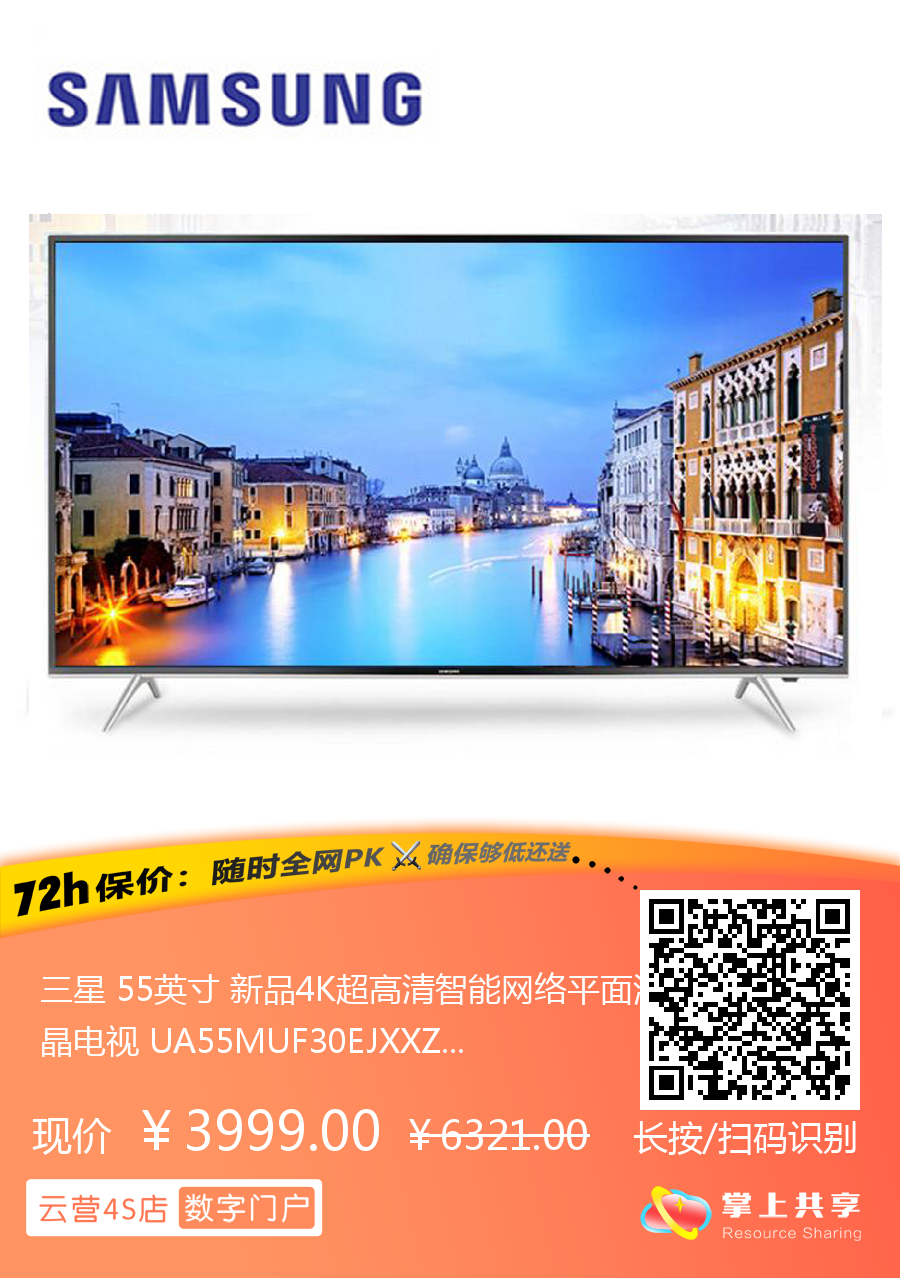 三星 55英寸 新品4K超高清智能网络平面液晶电视 UA55MUF30EJXXZ