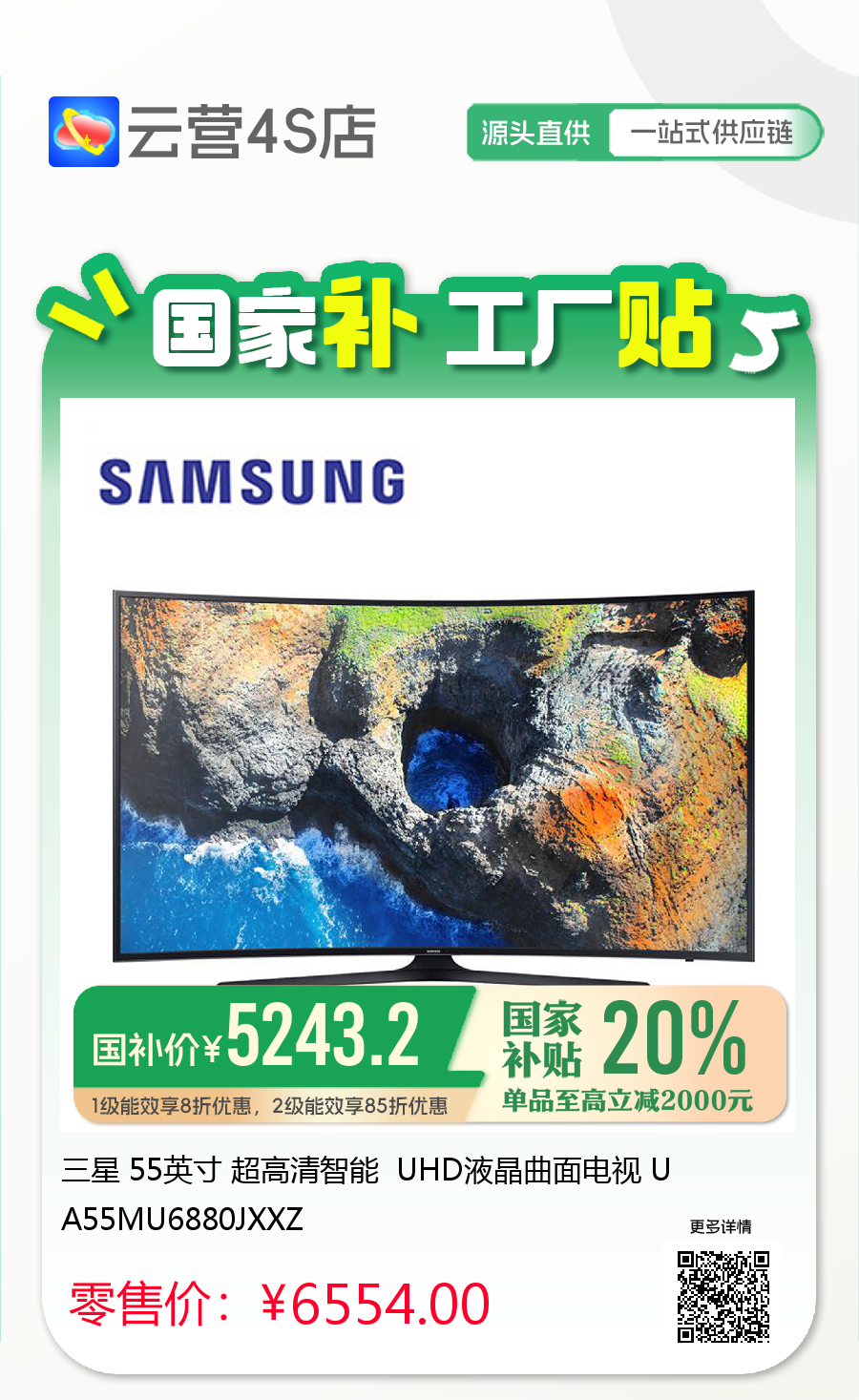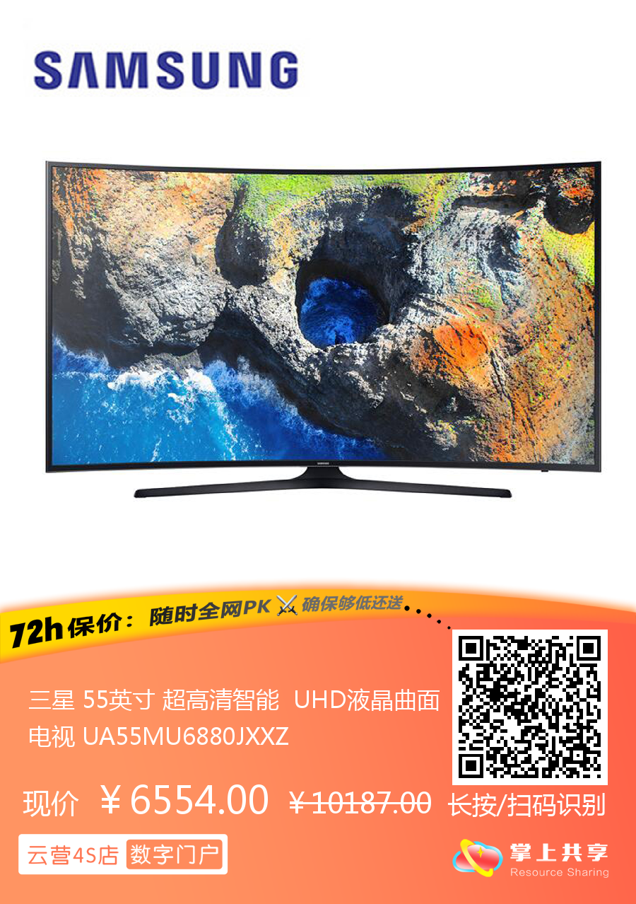 三星 55英寸 超高清智能 UHD液晶曲面电视 UA55MU6880JXXZ