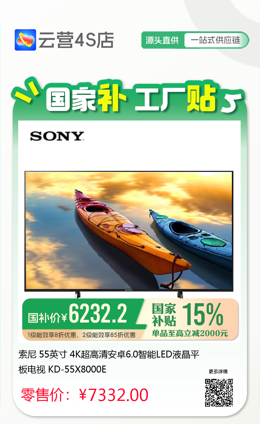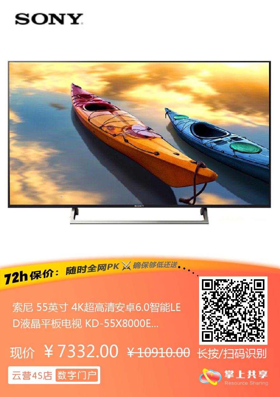 索尼 55英寸 4K超高清安卓6.0智能LED液晶平板电视 KD-55X8000E