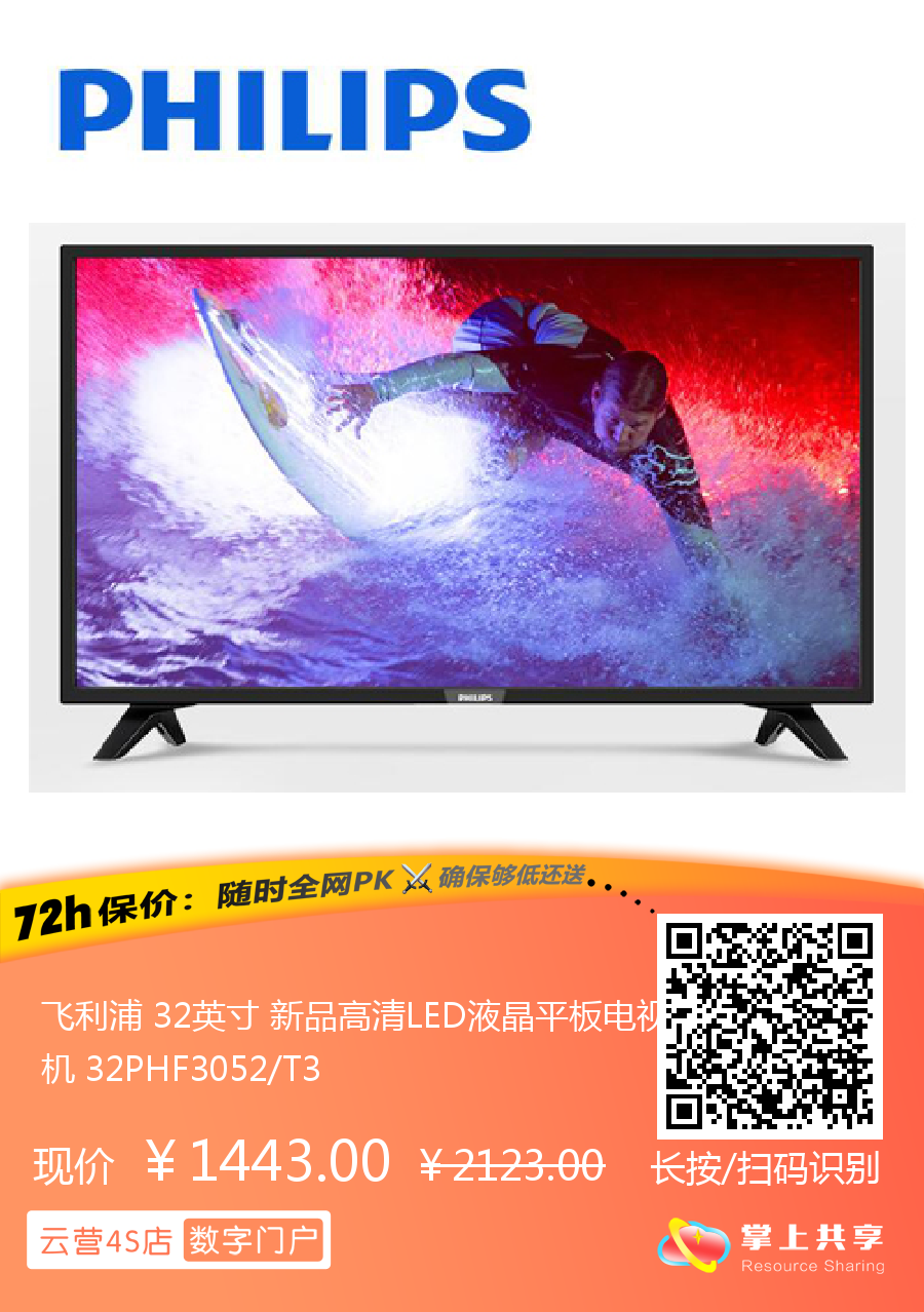 飞利浦 32英寸 新品高清LED液晶平板电视机 32PHF3052/T3