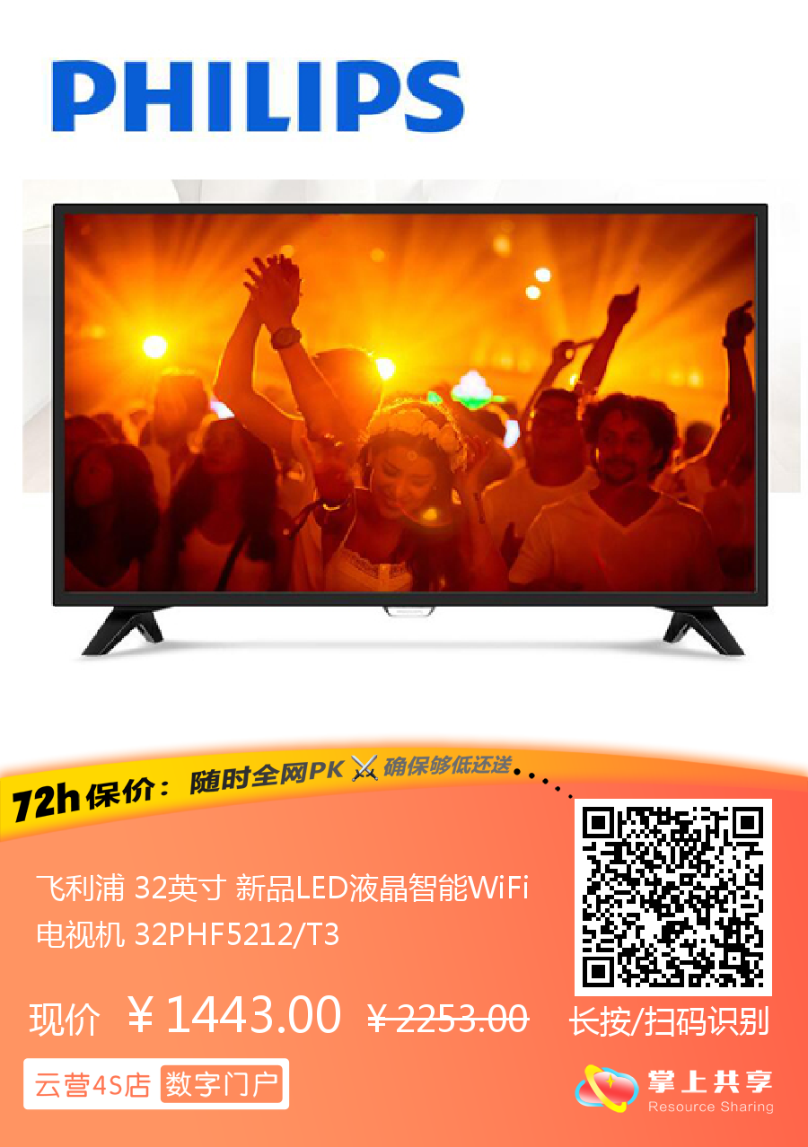 飞利浦 32英寸 新品LED液晶智能WiFi电视机 32PHF5212/T3