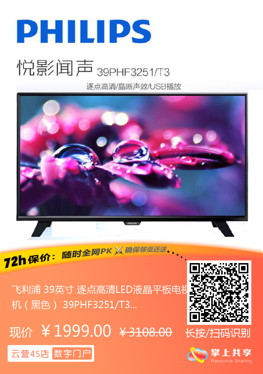 飞利浦电视~「云营4S店❃无界直营」