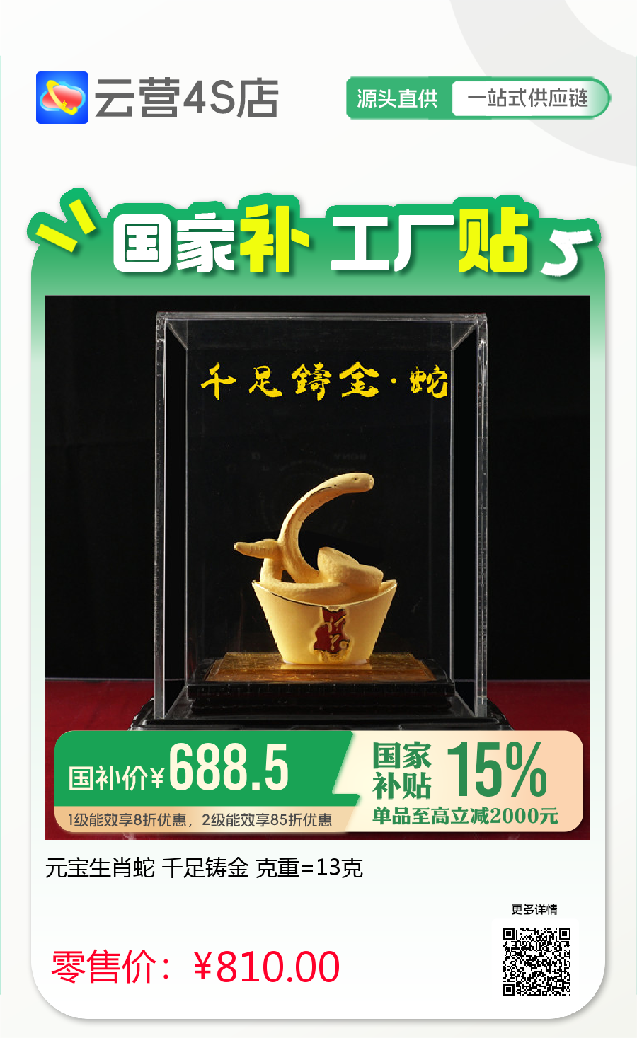 元宝生肖蛇 千足铸金 克重=13克