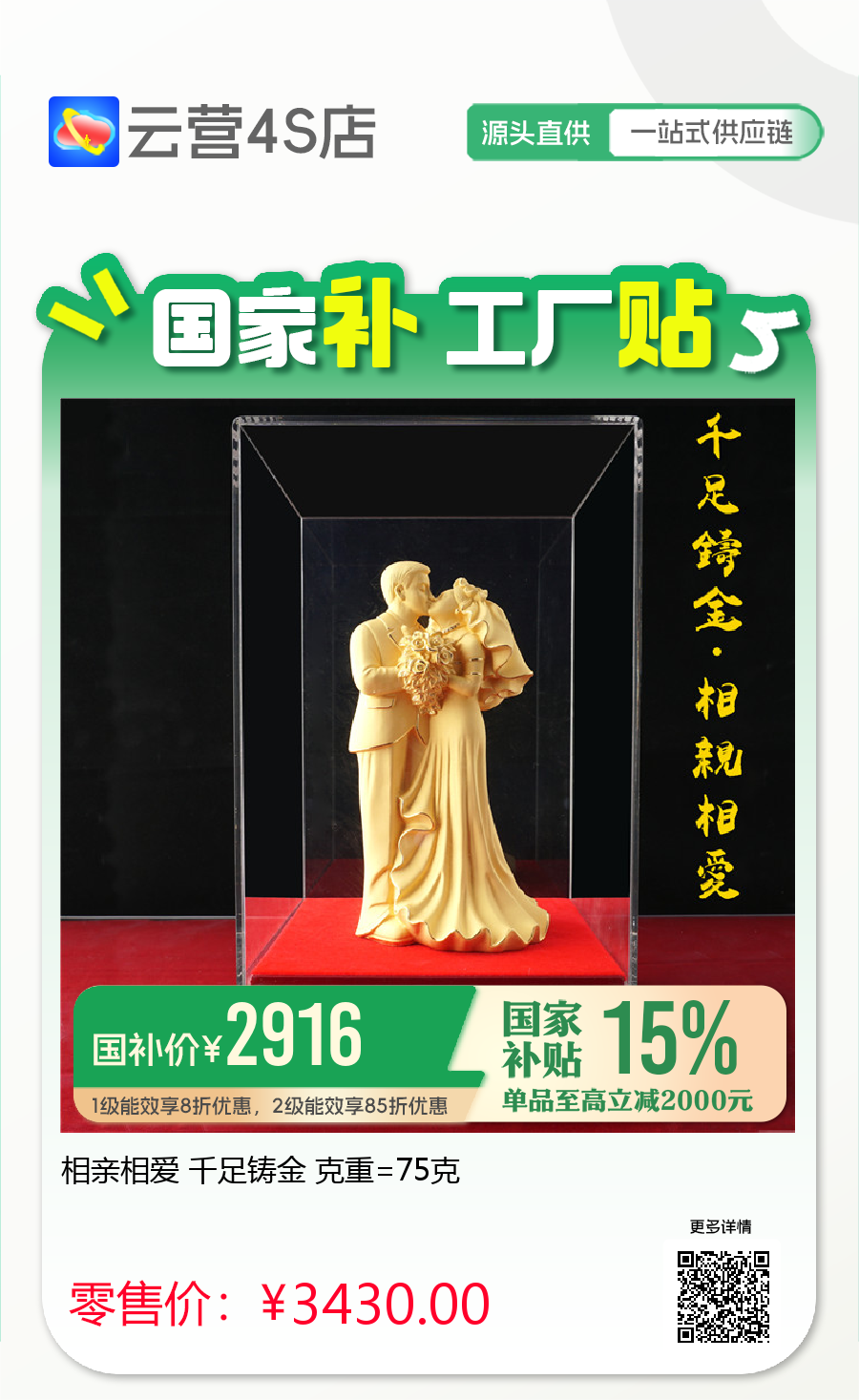 相亲相爱 千足铸金 克重=75克