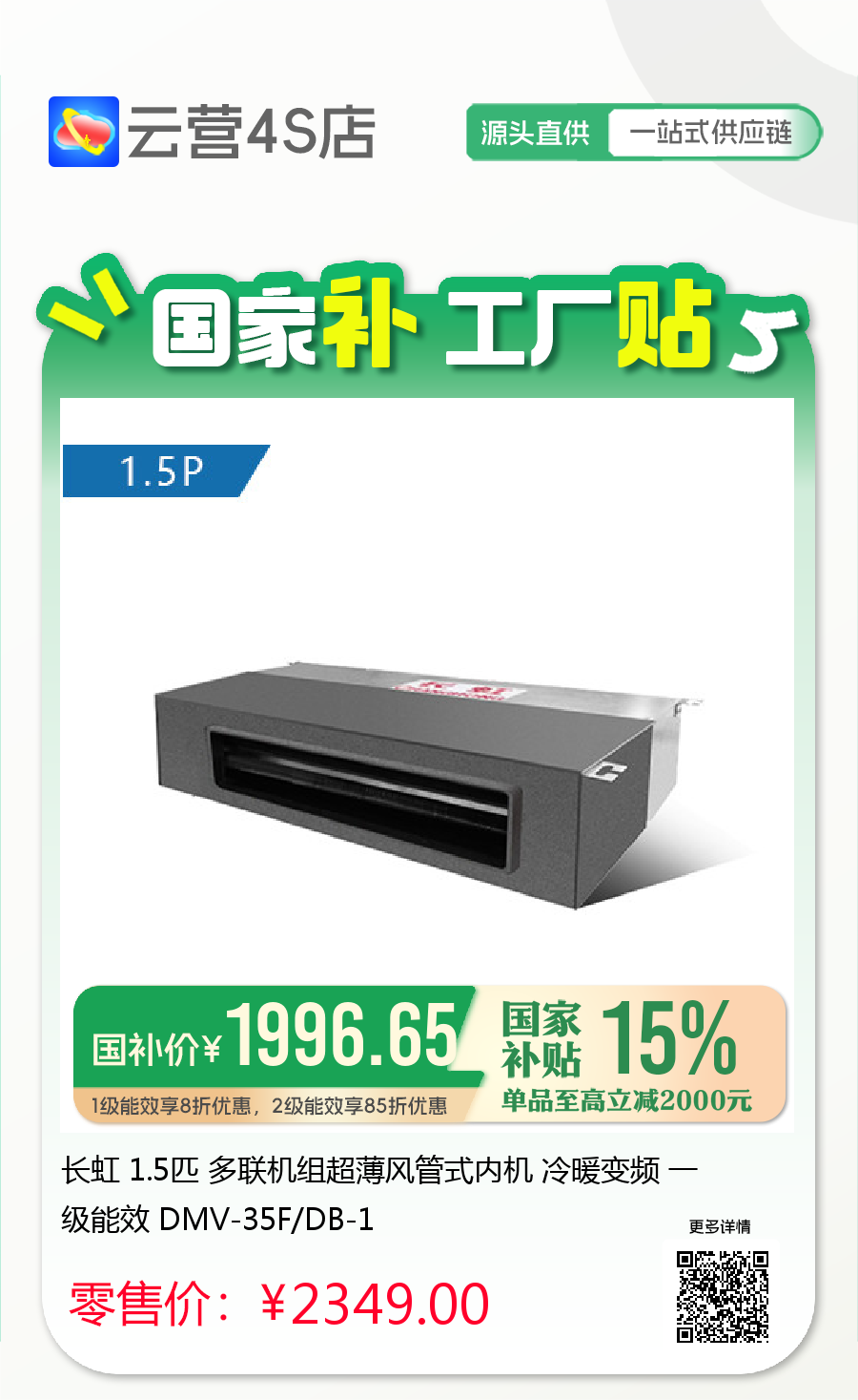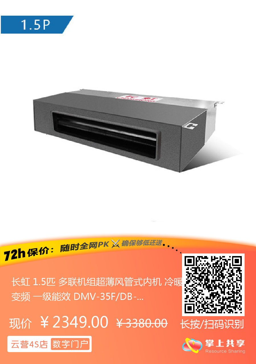 长虹 1.5匹 多联机组超薄风管式内机 冷暖变频 一级能效 DMV-35F/DB-1