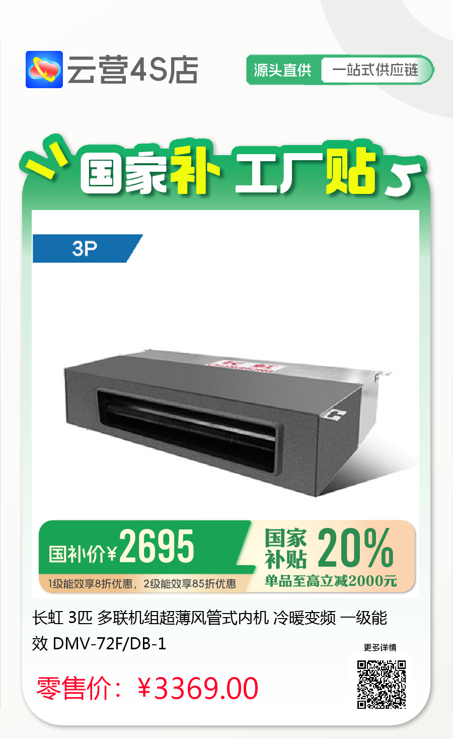 长虹 3匹 多联机组超薄风管式内机 冷暖变频 一级能效 DMV-72F/DB-1