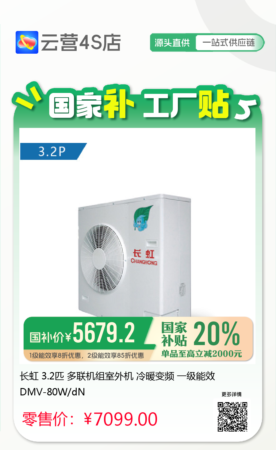 长虹 3.2匹 多联机组室外机 冷暖变频 一级能效 DMV-80W/dN