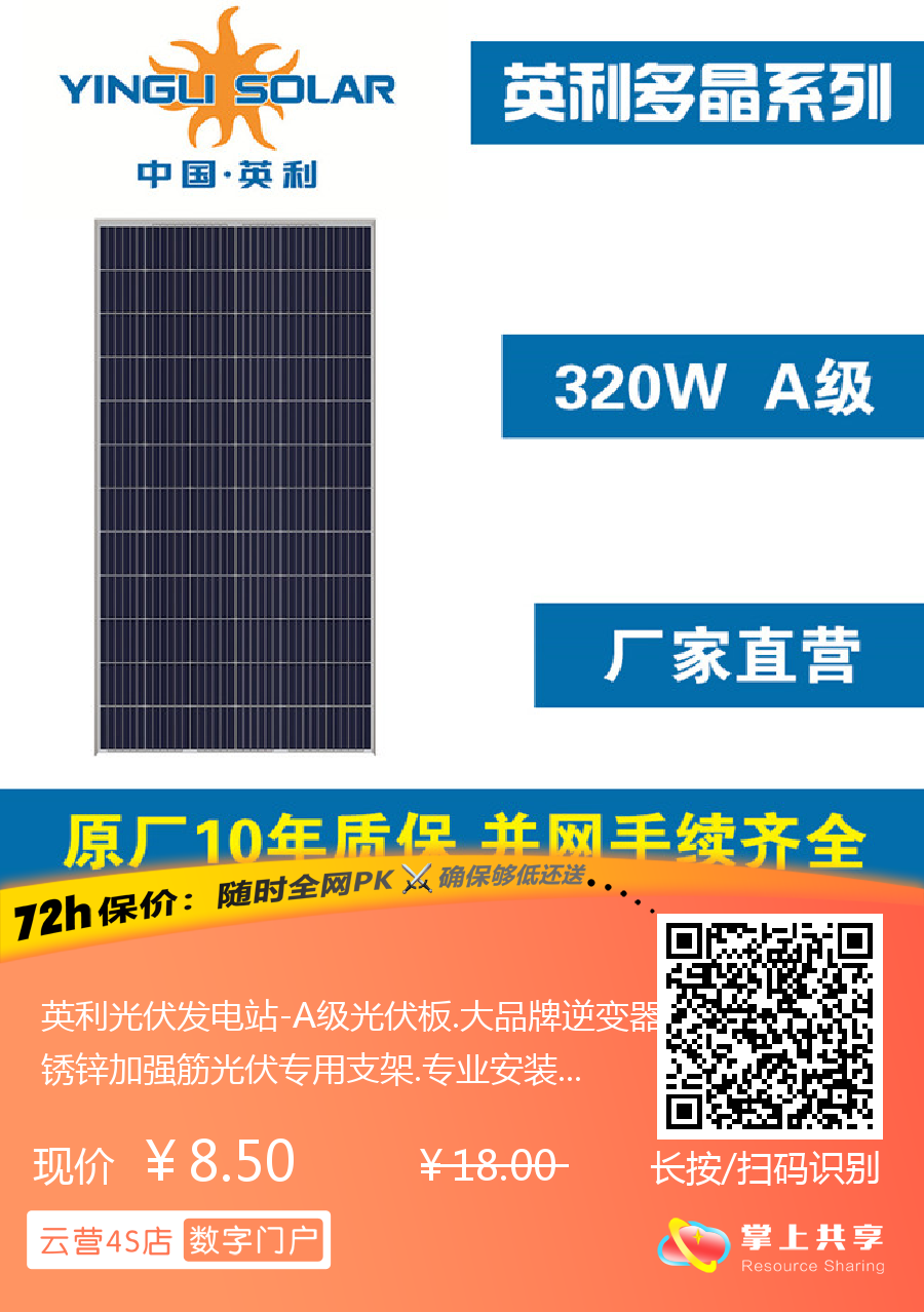 英利光伏发电站-A级光伏板.大品牌逆变器.不锈锌加强筋光伏专用支架.专业安装