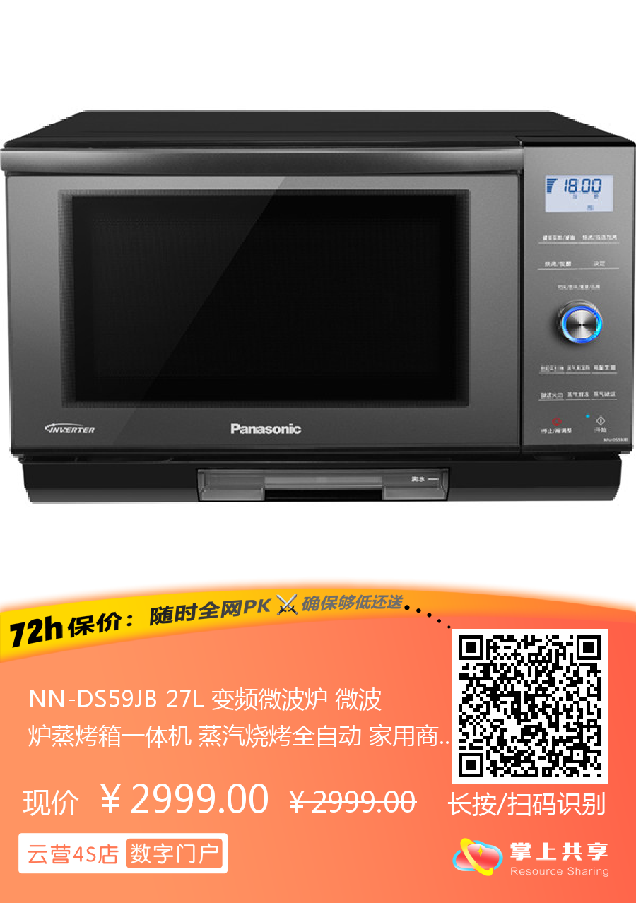 NN-DS59JB 27L 变频微波炉 微波炉蒸烤箱一体机 蒸汽烧烤全自动 家用商用多功能微蒸烤烘焙机 松下(Panasonic)