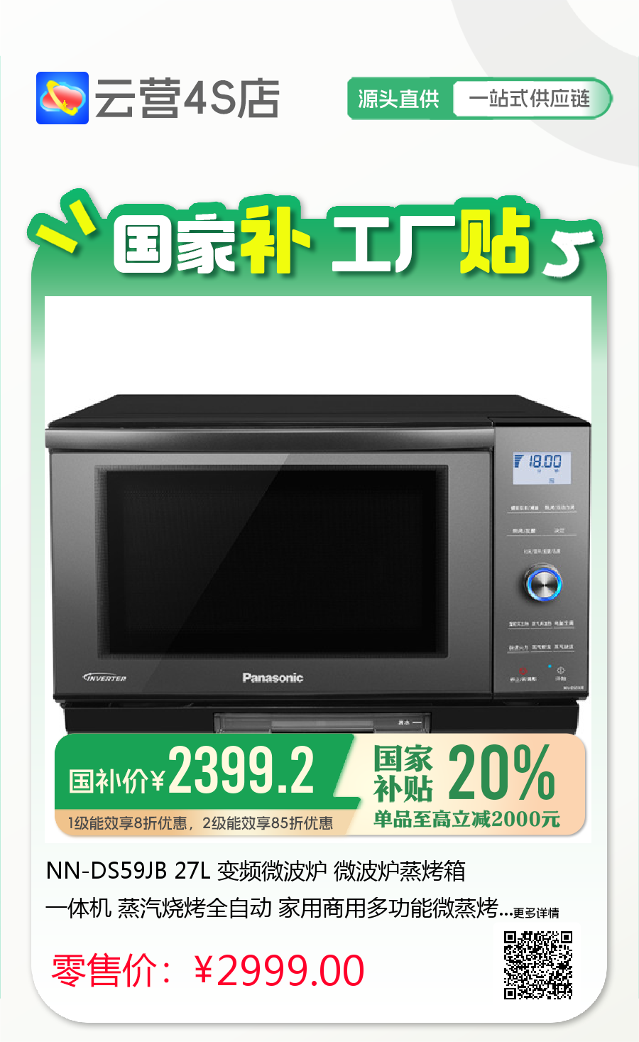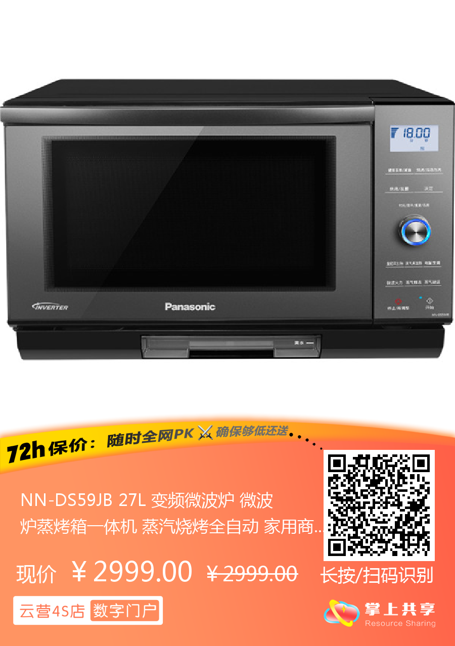 NN-DS59JB 27L 变频微波炉 微波炉蒸烤箱一体机 蒸汽烧烤全自动 家用商用多功能微蒸烤烘焙机 松下(Panasonic)