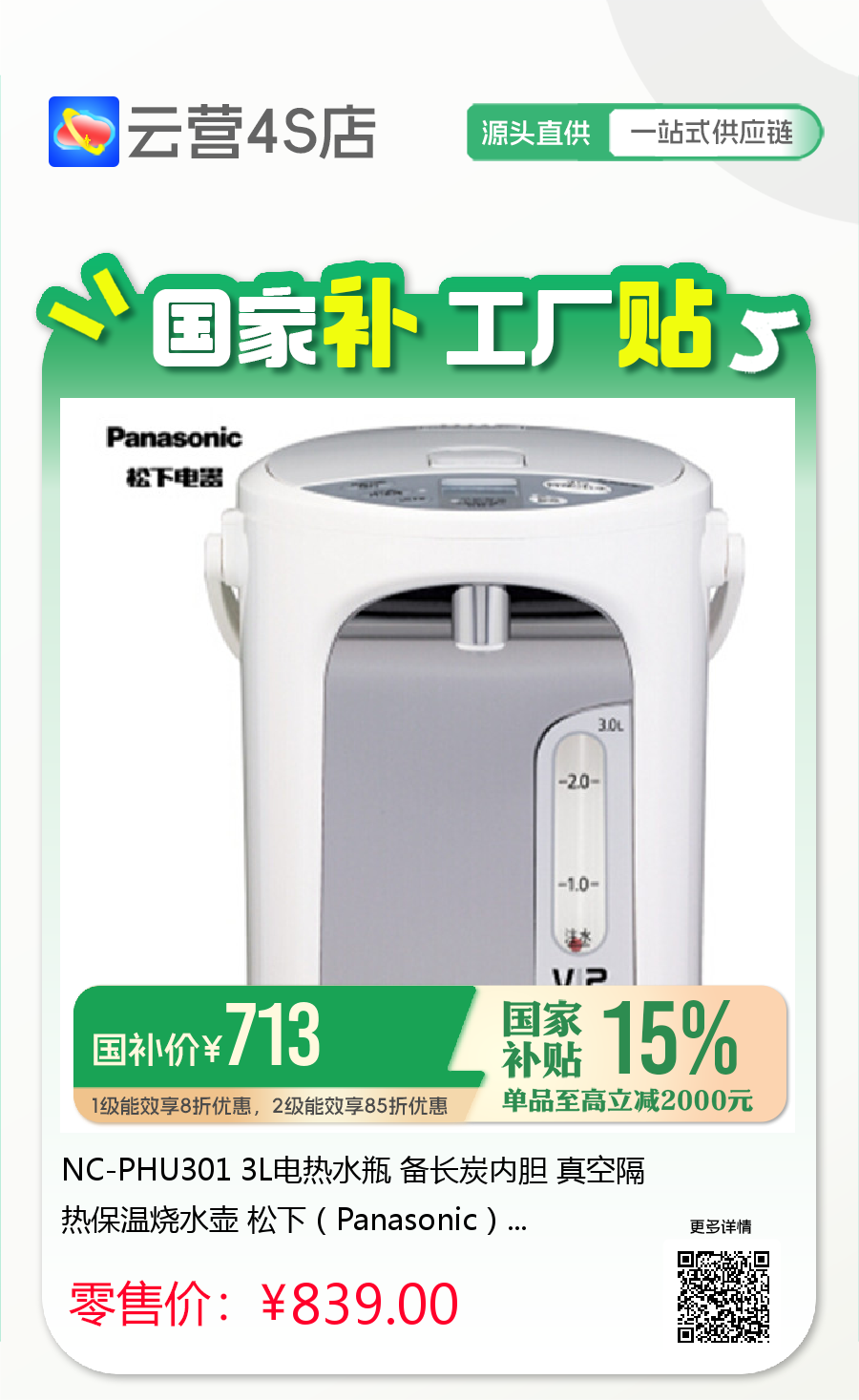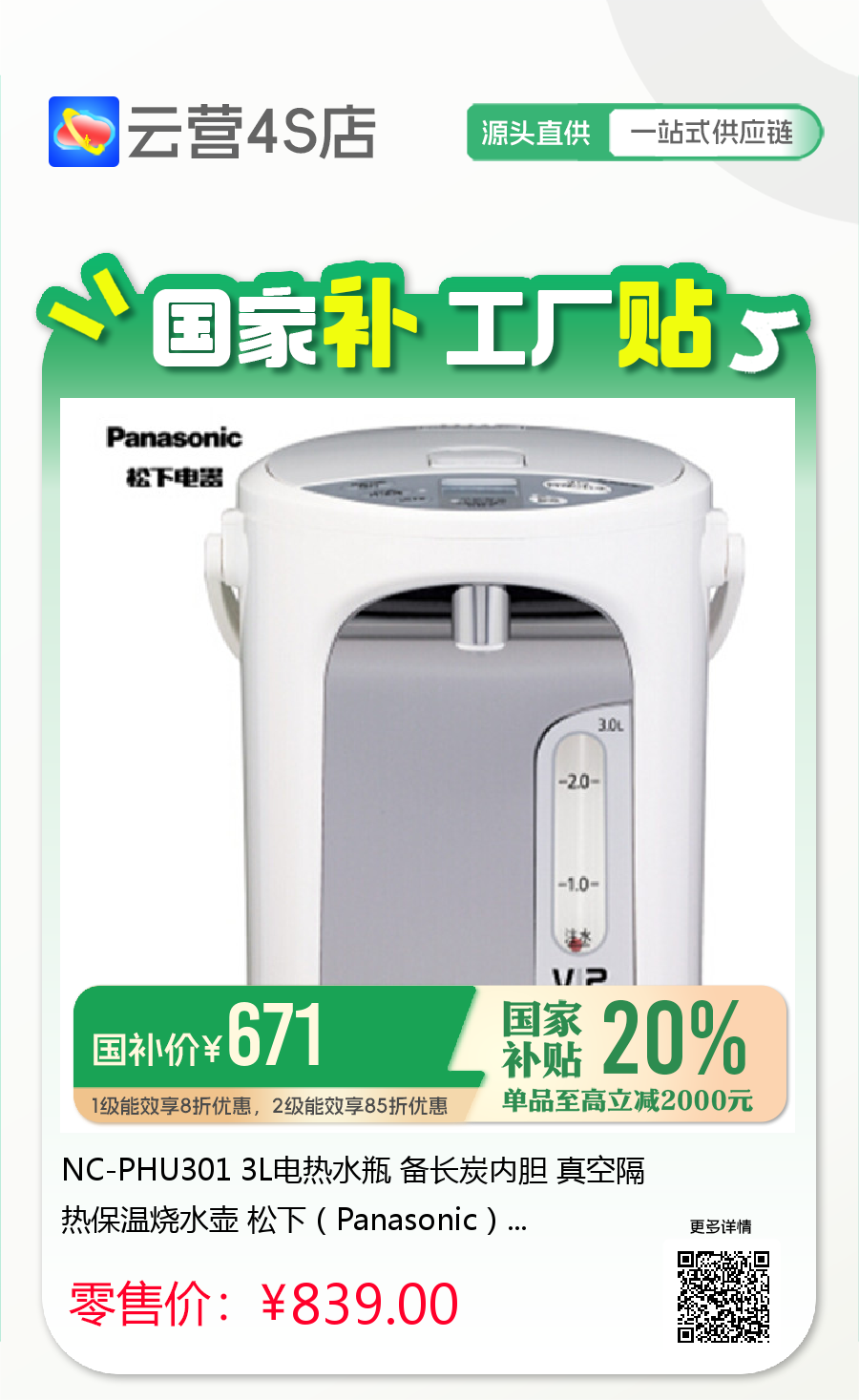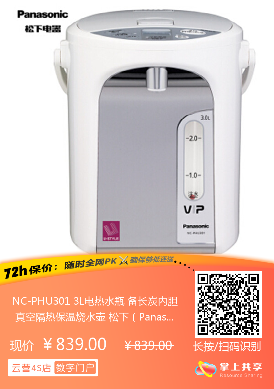 NC-PHU301 3L电热水瓶 备长炭内胆 真空隔热保温烧水壶 松下(Panasonic)