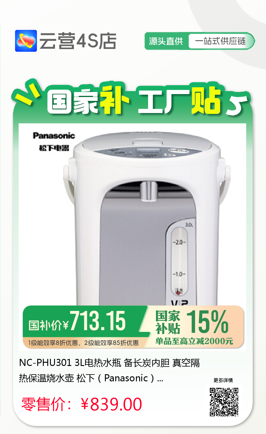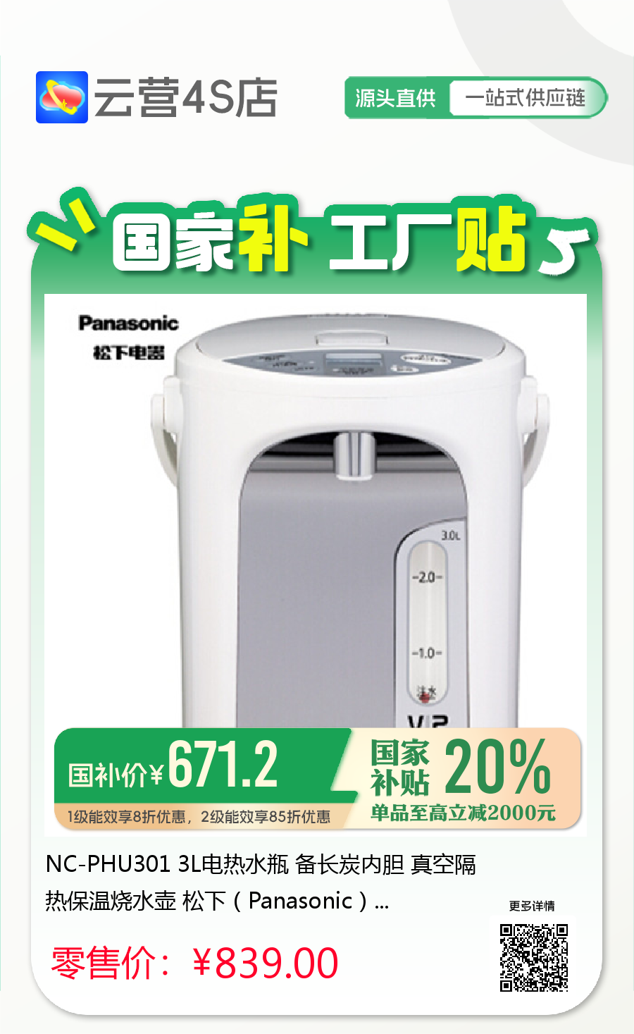 NC-PHU301 3L电热水瓶 备长炭内胆 真空隔热保温烧水壶 松下(Panasonic)