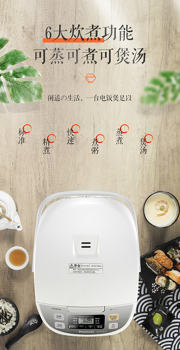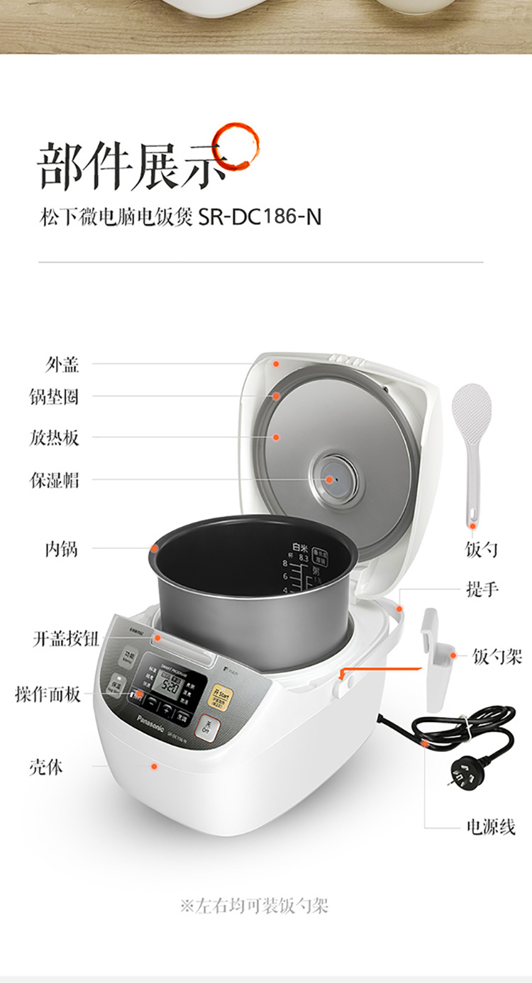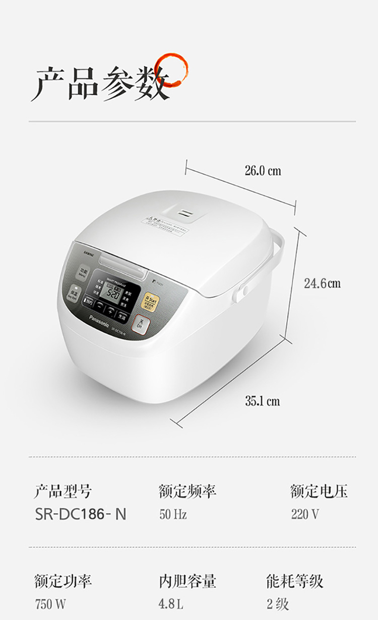 SR-DC186-N 4.8L 电饭煲 备长炭厚锅 智能烹饪 可预约 白色 松下(Panasonic)