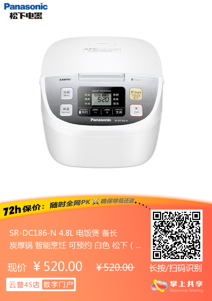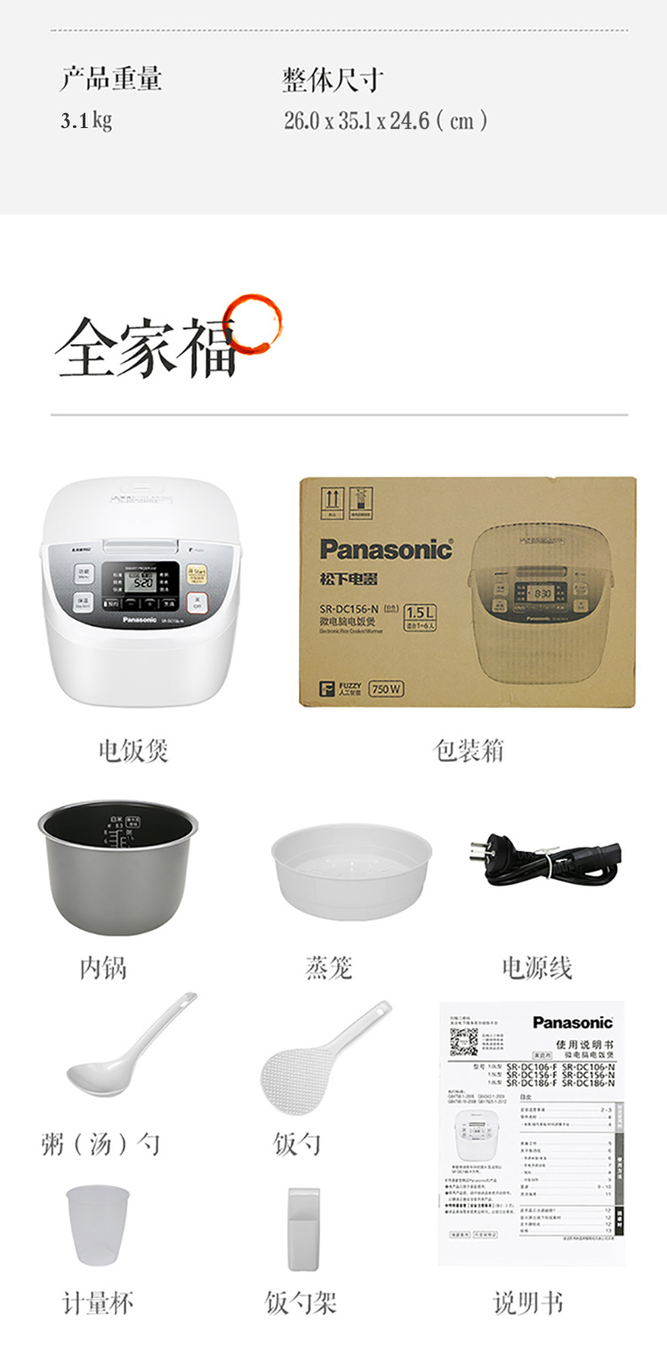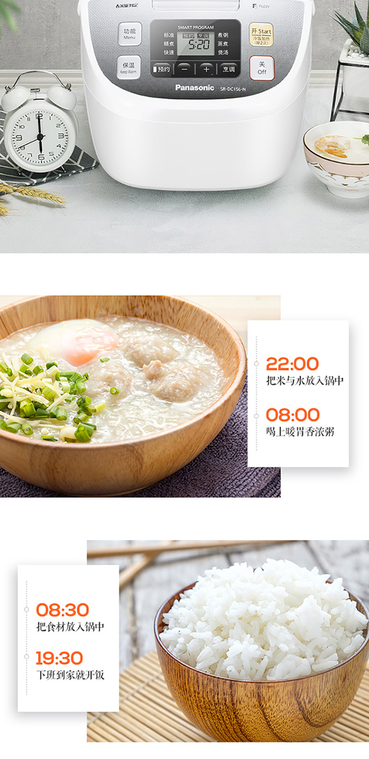 SR-DC186-N 4.8L 电饭煲 备长炭厚锅 智能烹饪 可预约 白色 松下(Panasonic)