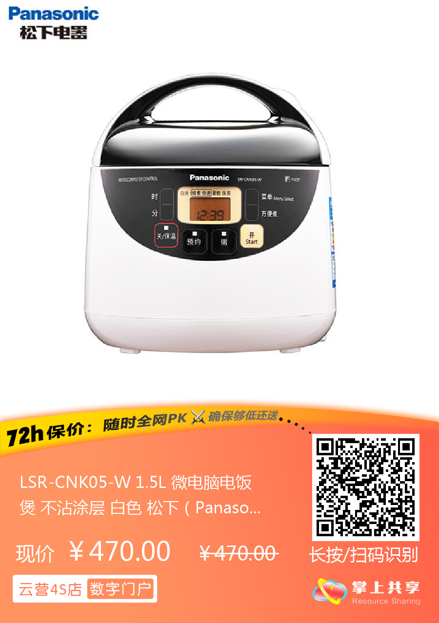 LSR-CNK05-W 1.5L 微电脑电饭煲 不沾涂层 白色 松下(Panasonic)