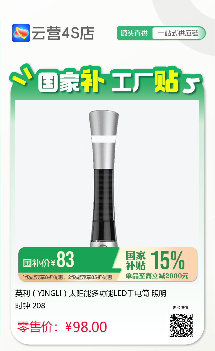英利(YINGLI)太阳能多功能LED手电筒 照明 时钟 208