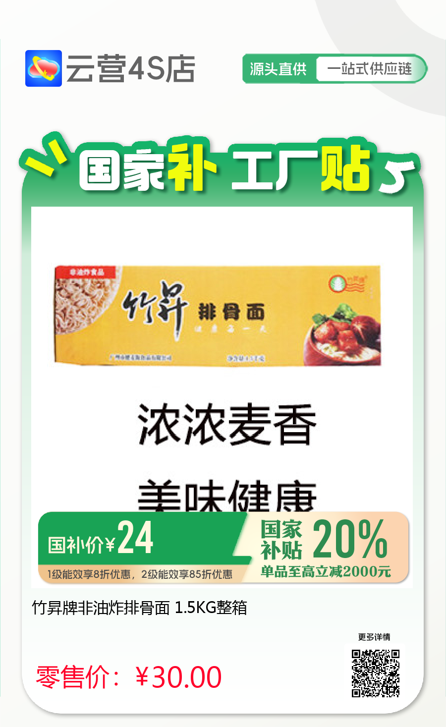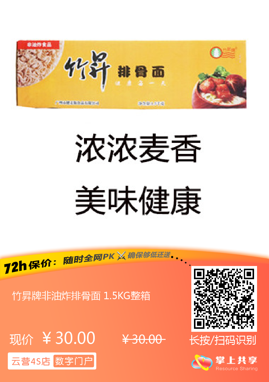 竹昇牌非油炸排骨面 1.5KG整箱
