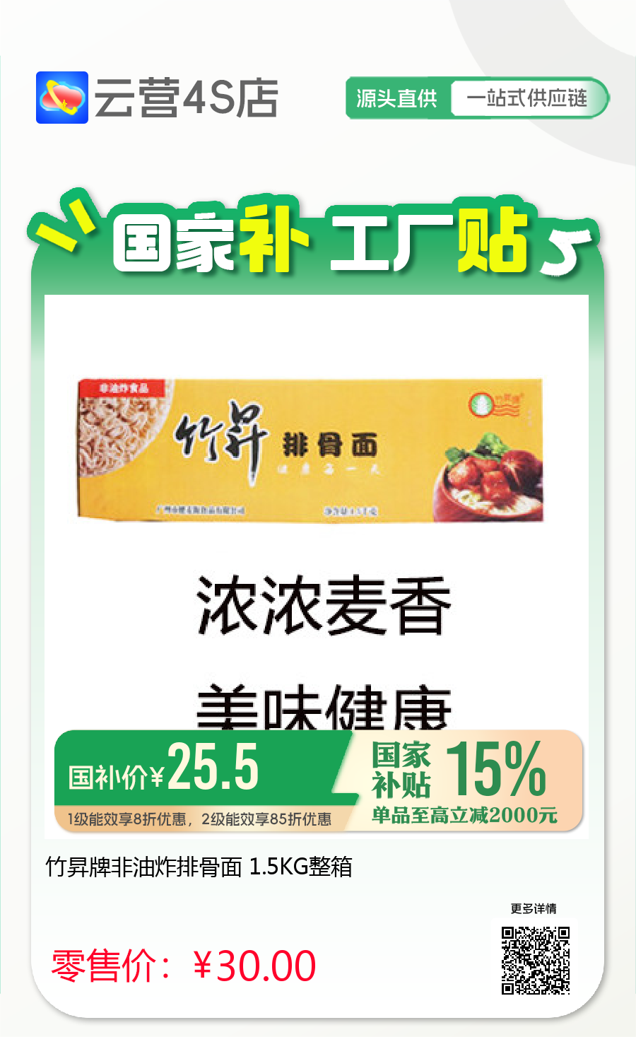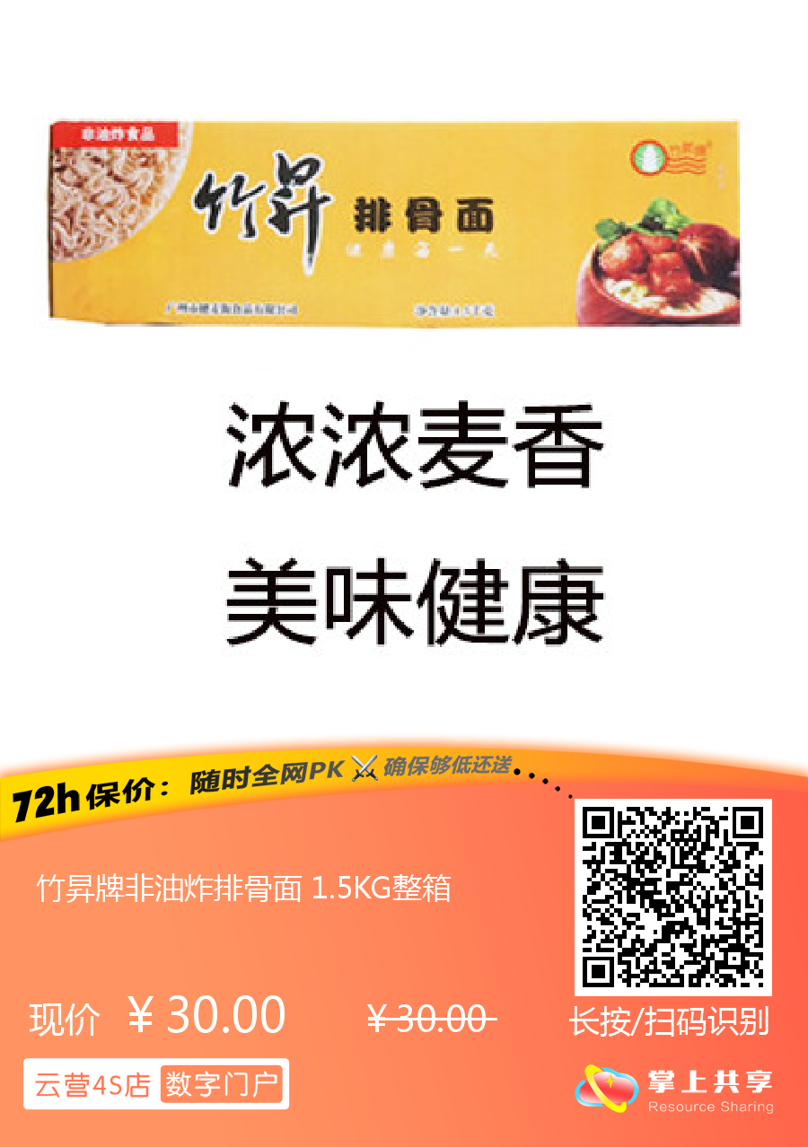 竹昇牌非油炸排骨面 1.5KG整箱