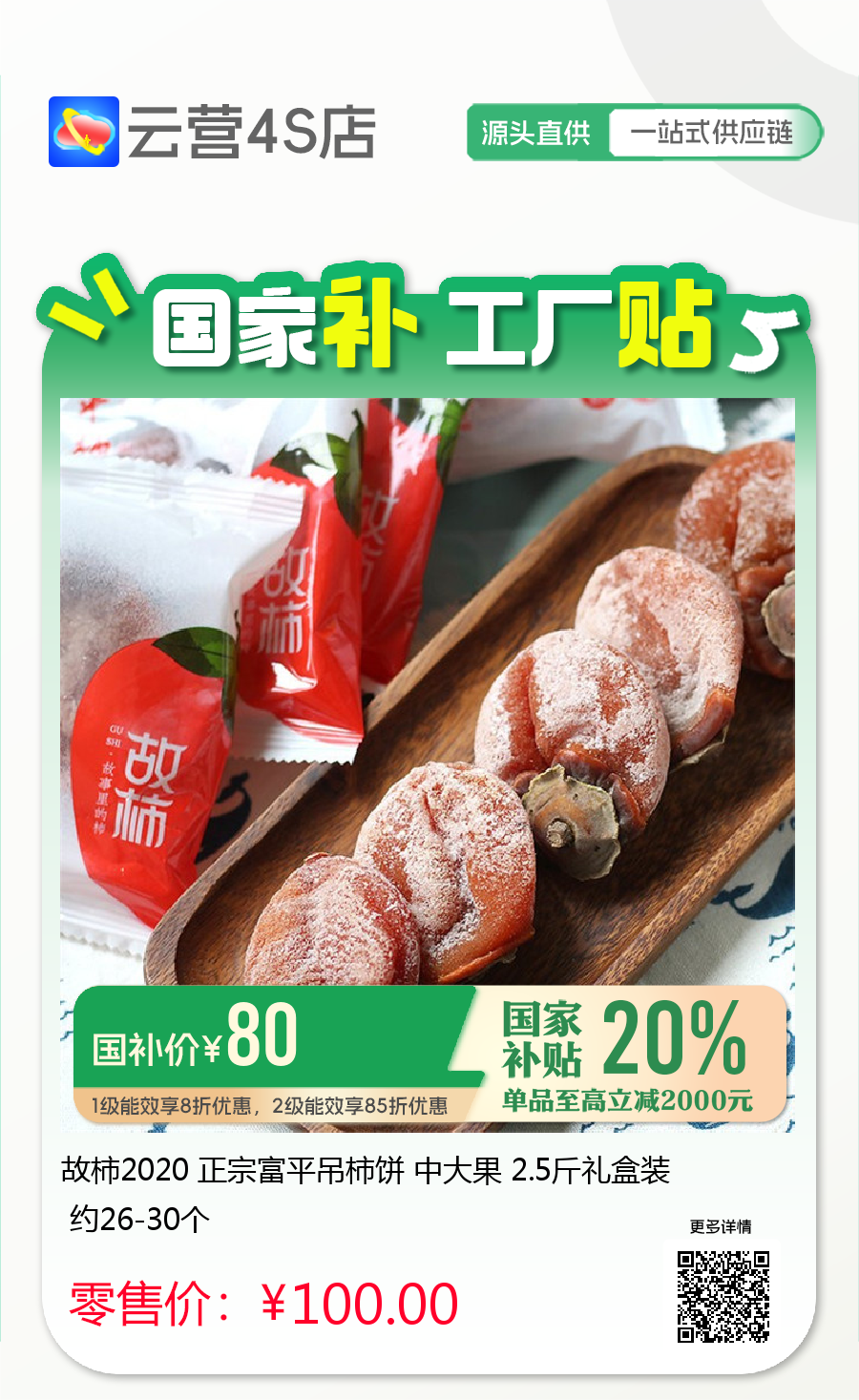 故柿2020 正宗富平吊柿饼 中大果 2.5斤礼盒装 约26-30个