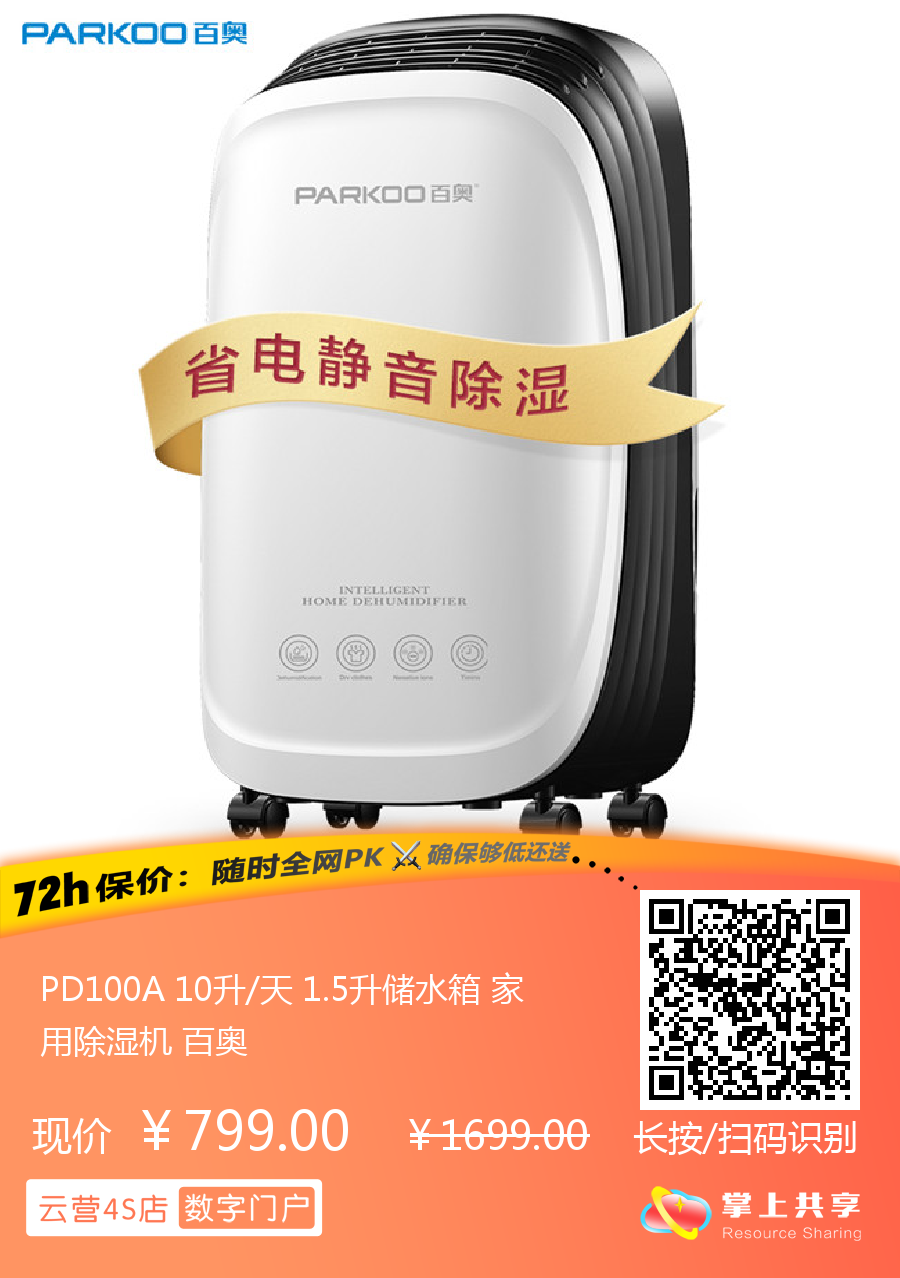 PD100A 10升/天 1.5升储水箱 家用除湿机 百奥