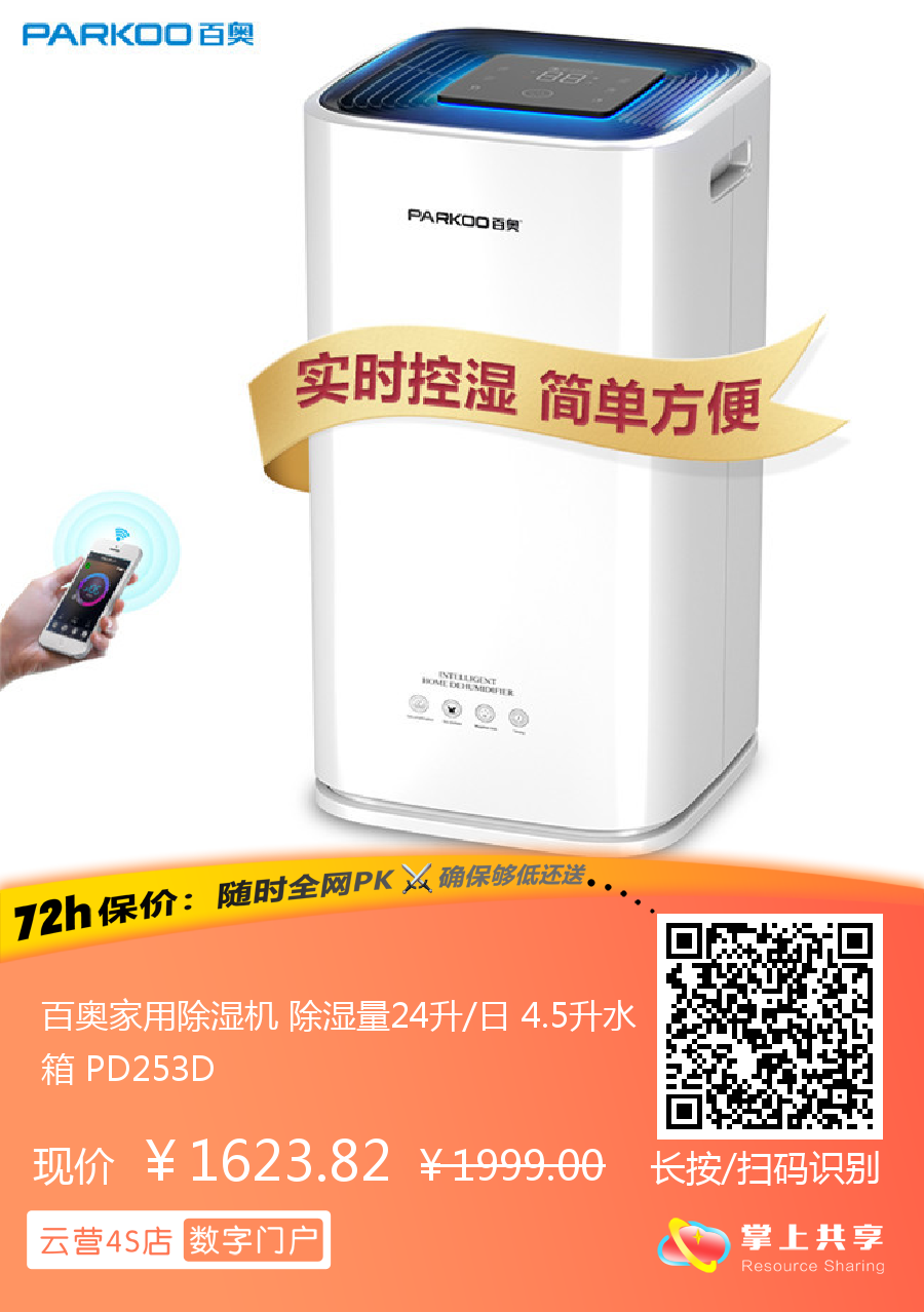 百奥家用除湿机 除湿量24升/日 4.5升水箱 PD253D