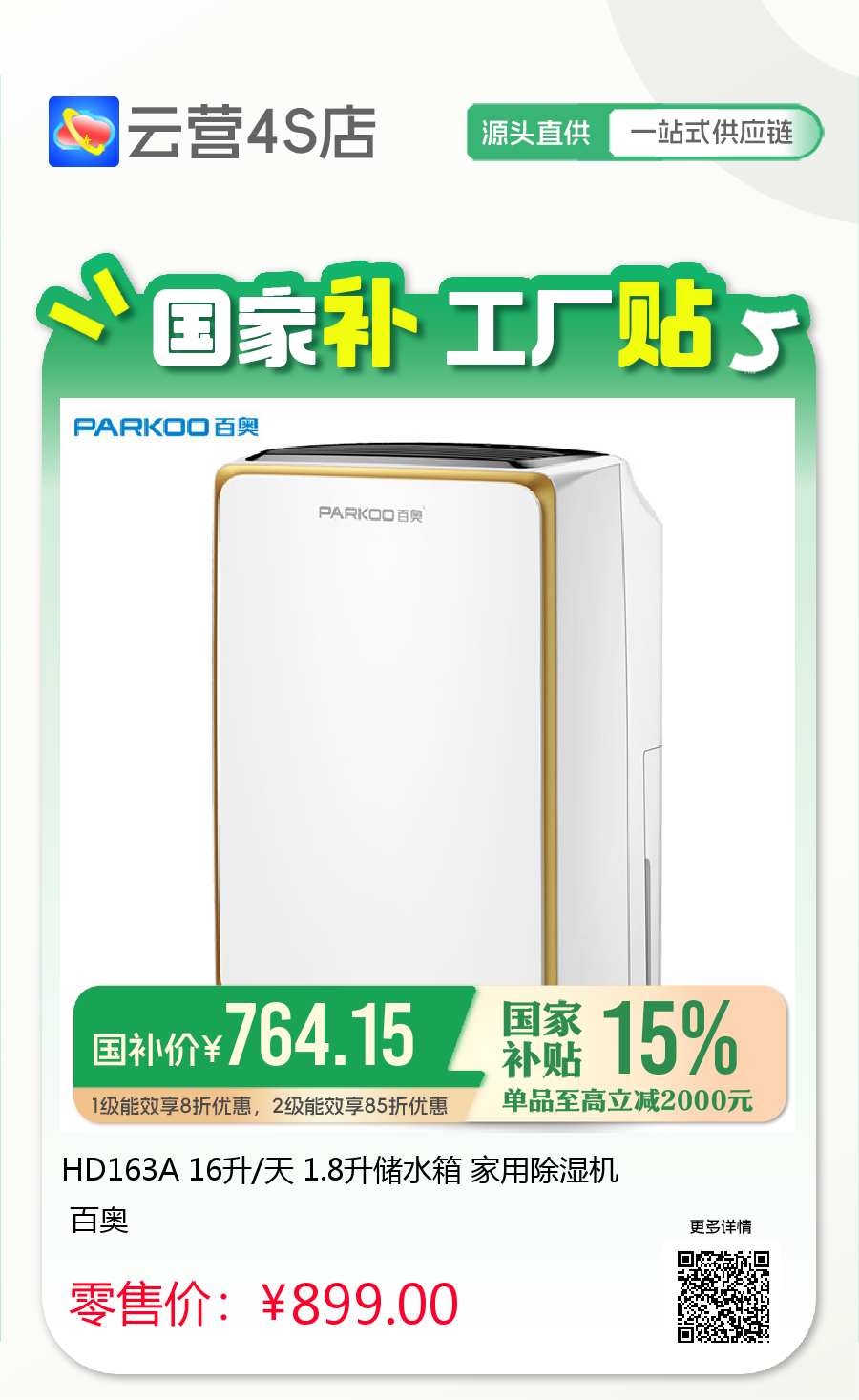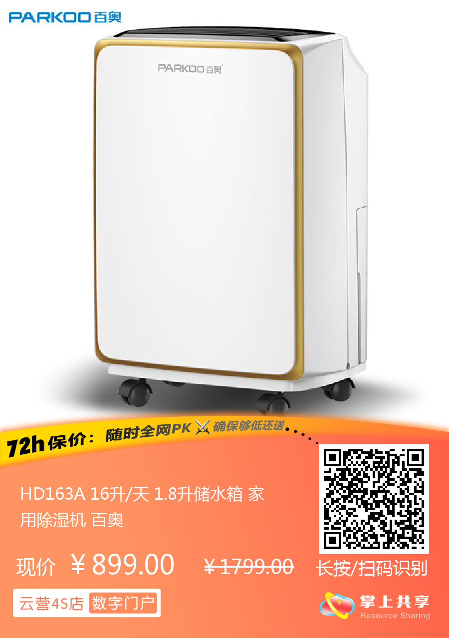 HD163A 16升/天 1.8升储水箱 家用除湿机 百奥