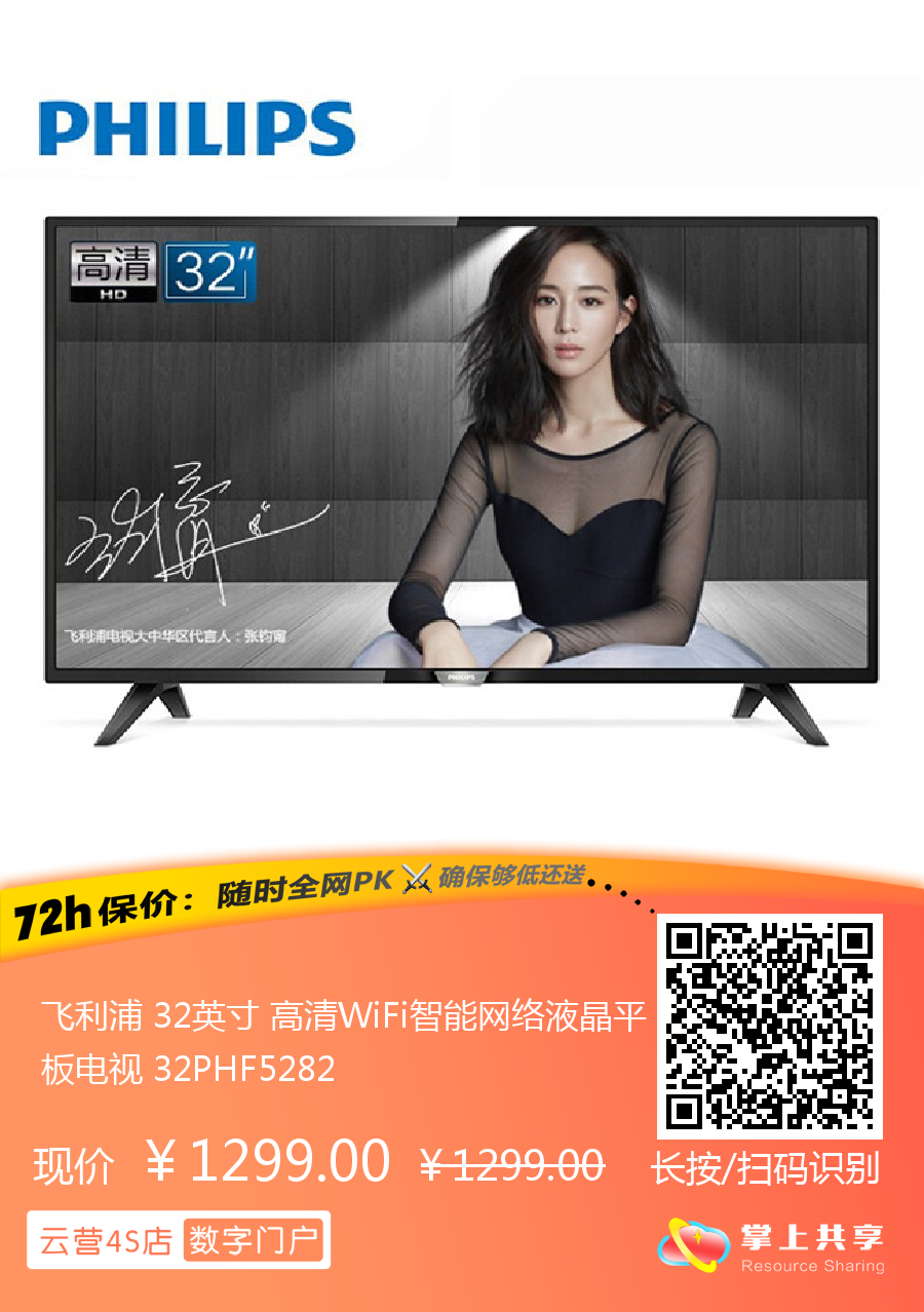 飞利浦 32英寸 高清WiFi智能网络液晶平板电视 32PHF5282