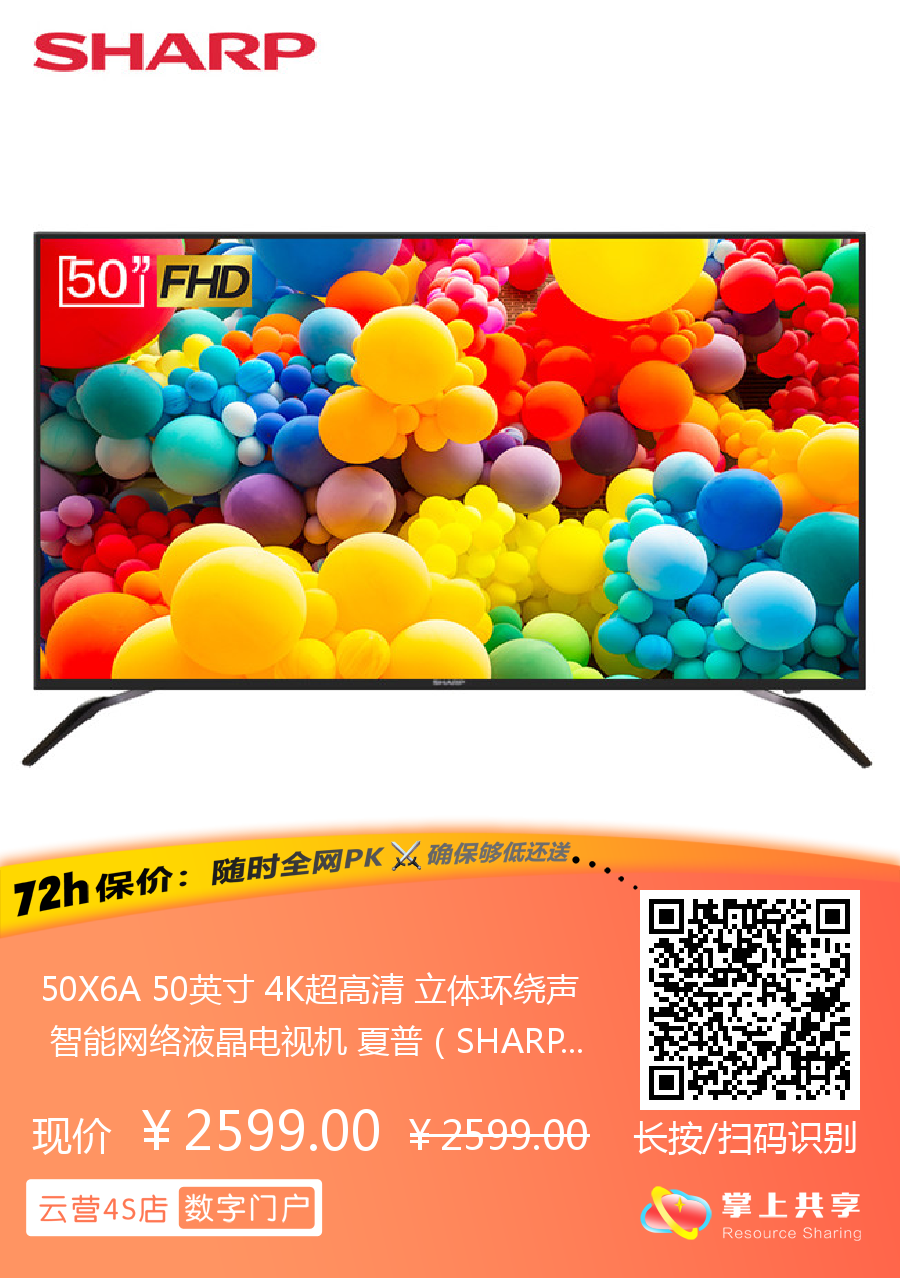 50X6A 50英寸 4K超高清 立体环绕声 智能网络液晶电视机 夏普(SHARP)