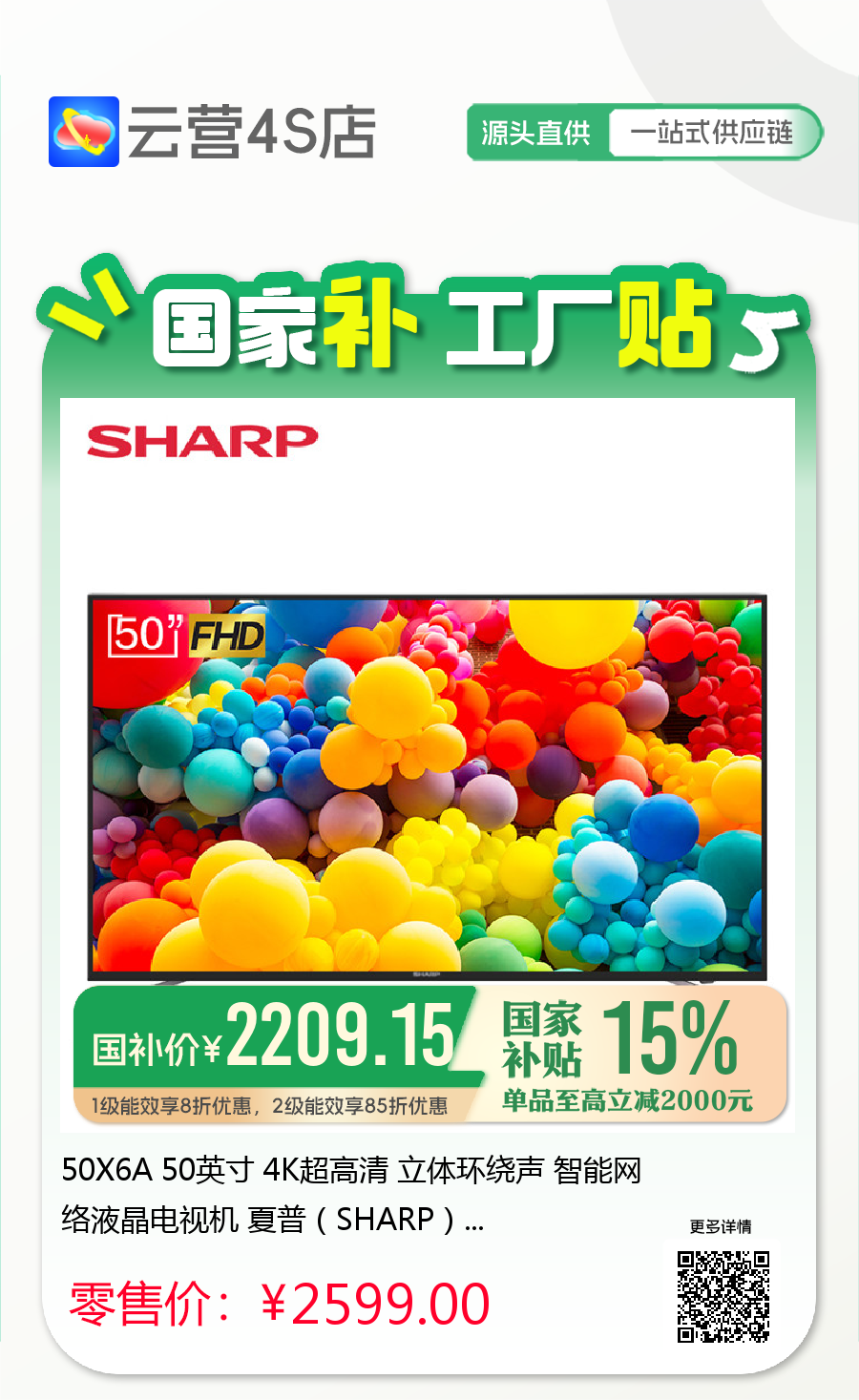 50X6A 50英寸 4K超高清 立体环绕声 智能网络液晶电视机 夏普(SHARP)