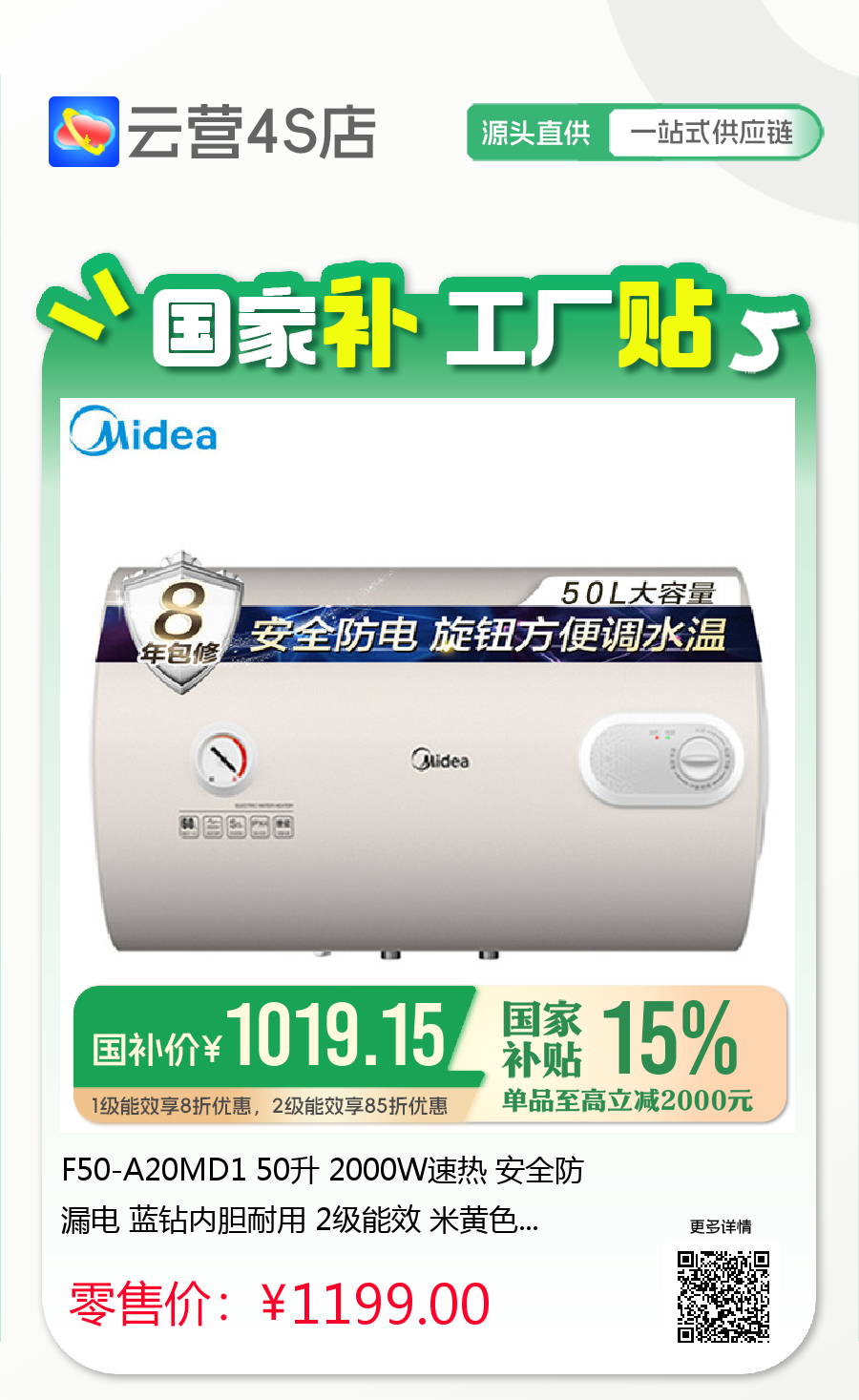 F50-A20MD1 50升 2000W速热 安全防漏电 蓝钻内胆耐用 2级能效 米黄色