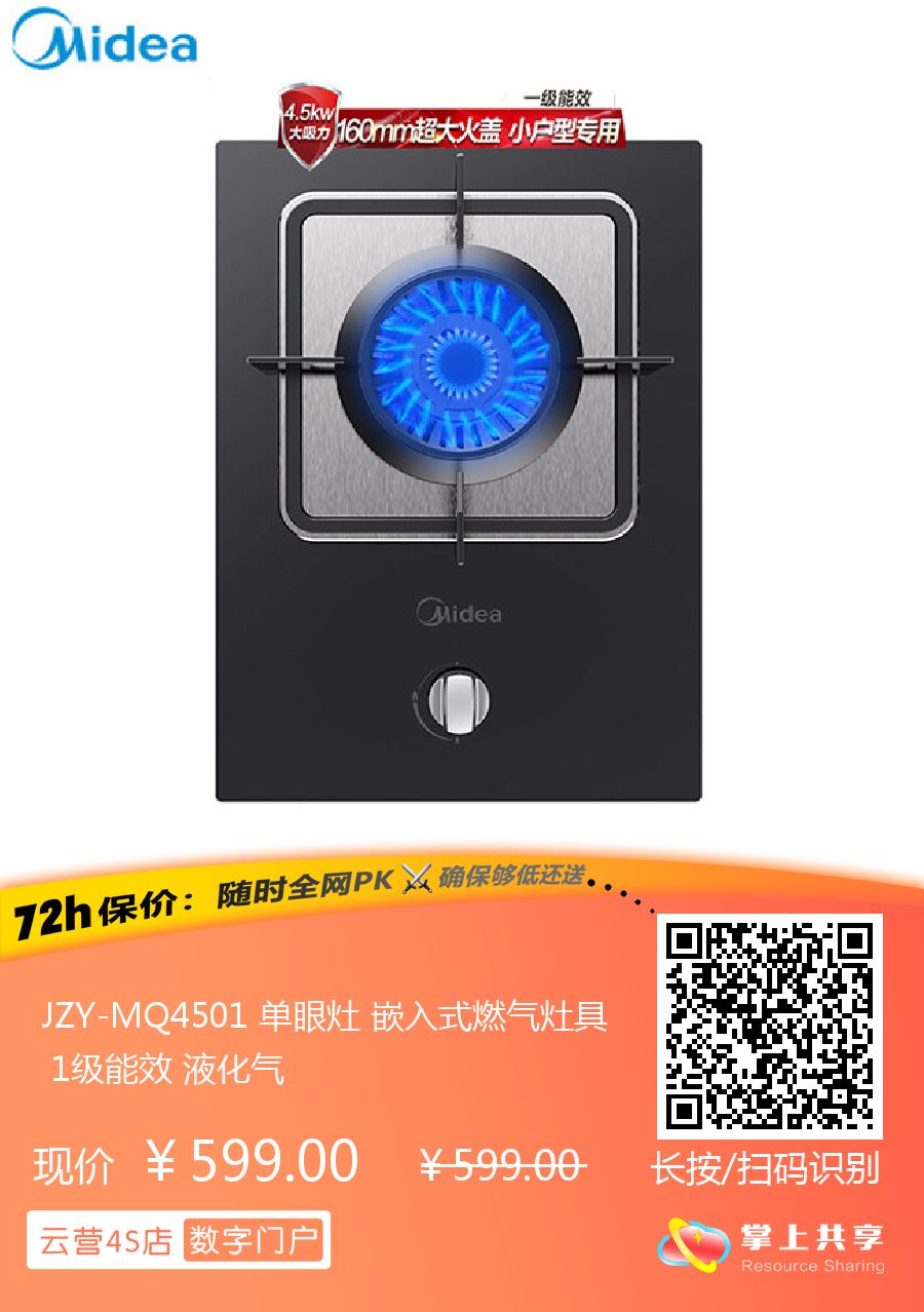 JZY-MQ4501 单眼灶 嵌入式燃气灶具 1级能效 液化气