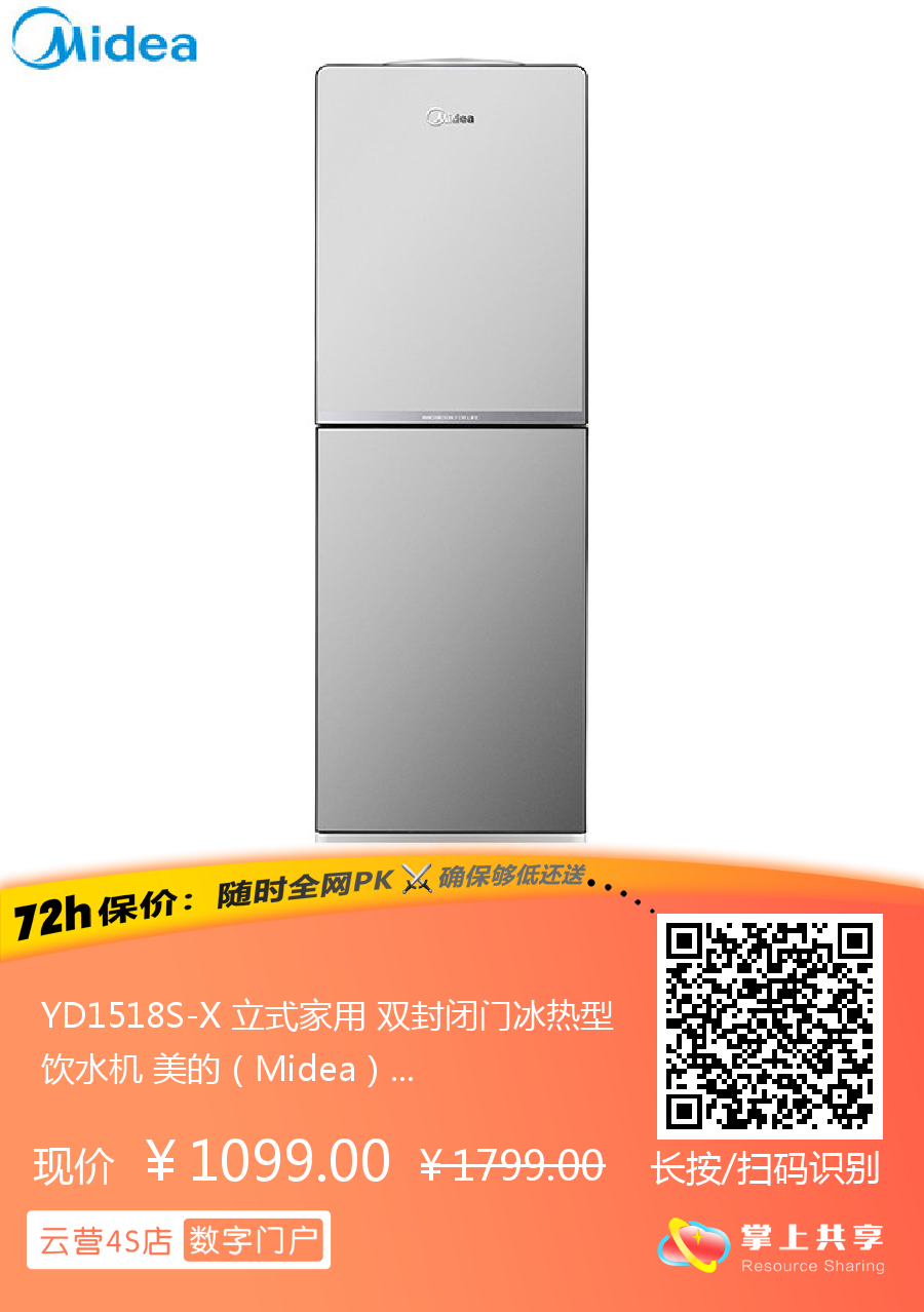 YD1518S-X 立式家用 双封闭门冰热型饮水机 美的(Midea)