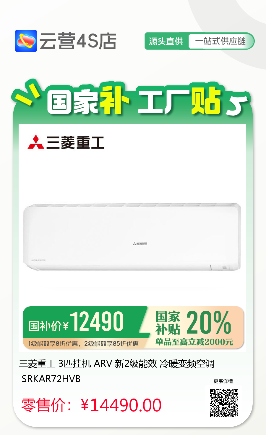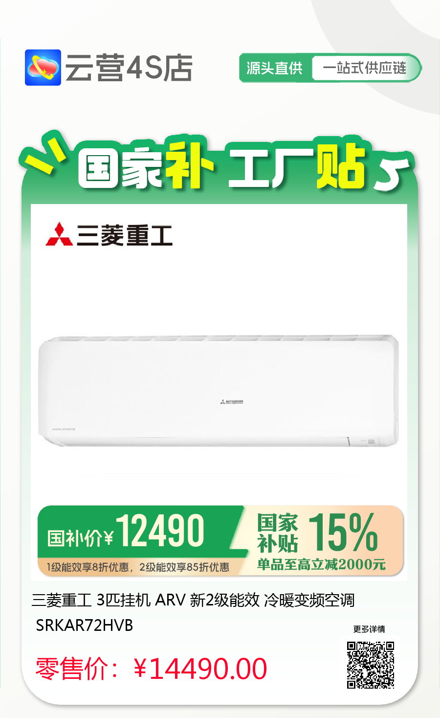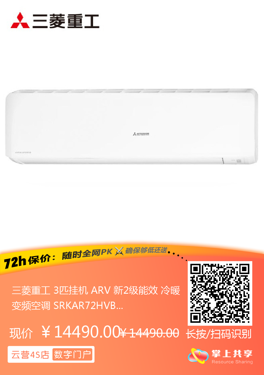 三菱重工 3匹挂机 ARV 新2级能效 冷暖变频空调 SRKAR72HVB
