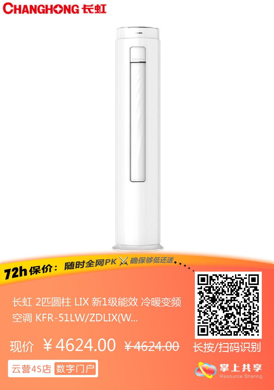 长虹 2匹圆柱 LIX 新1级能效 冷暖变频空调 KFR-51LW/ZDLIX(W1-H)+R1