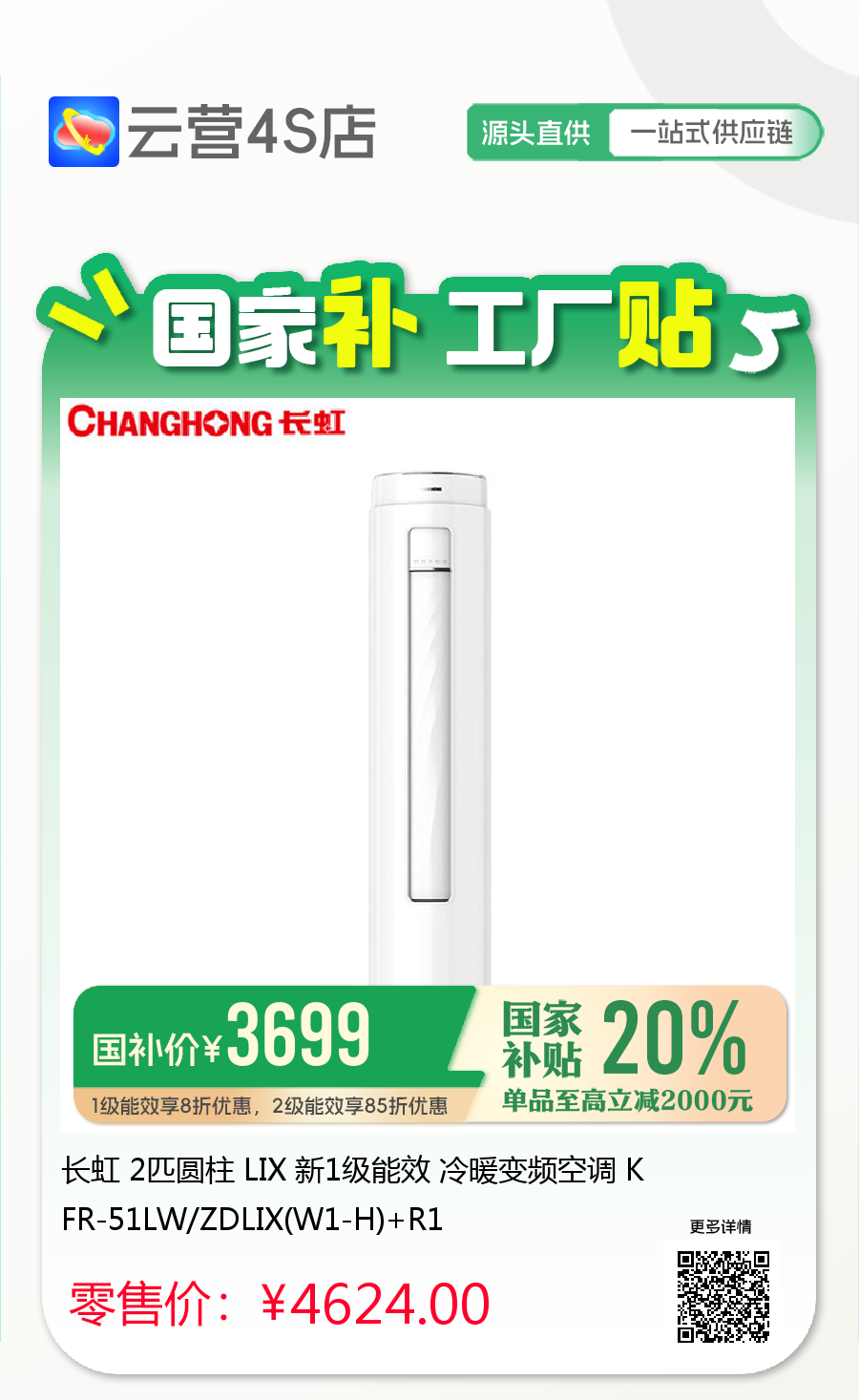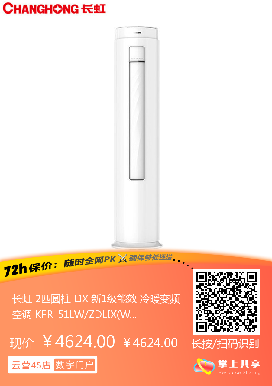 长虹 2匹圆柱 LIX 新1级能效 冷暖变频空调 KFR-51LW/ZDLIX(W1-H)+R1