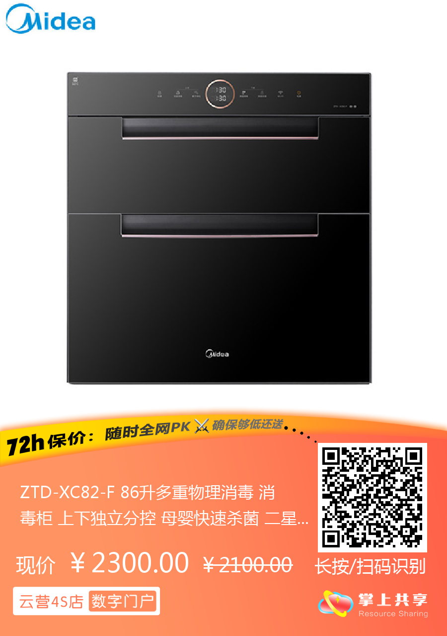 ZTD-XC82-F 86升多重物理消毒 消毒柜 上下独立分控 母婴快速杀菌 二星级消毒
