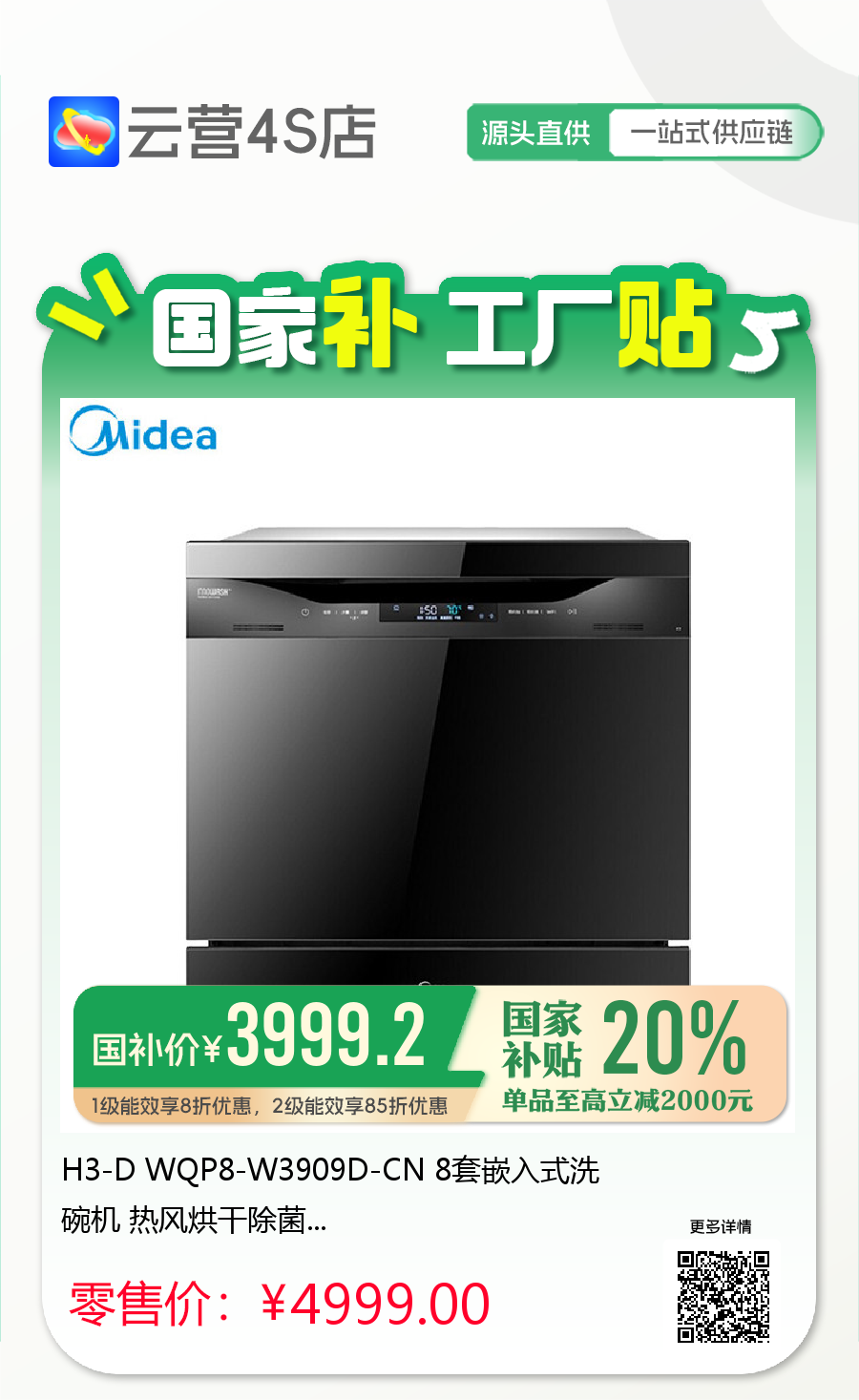 H3-D WQP8-W3909D-CN 8套嵌入式洗碗机 热风烘干除菌