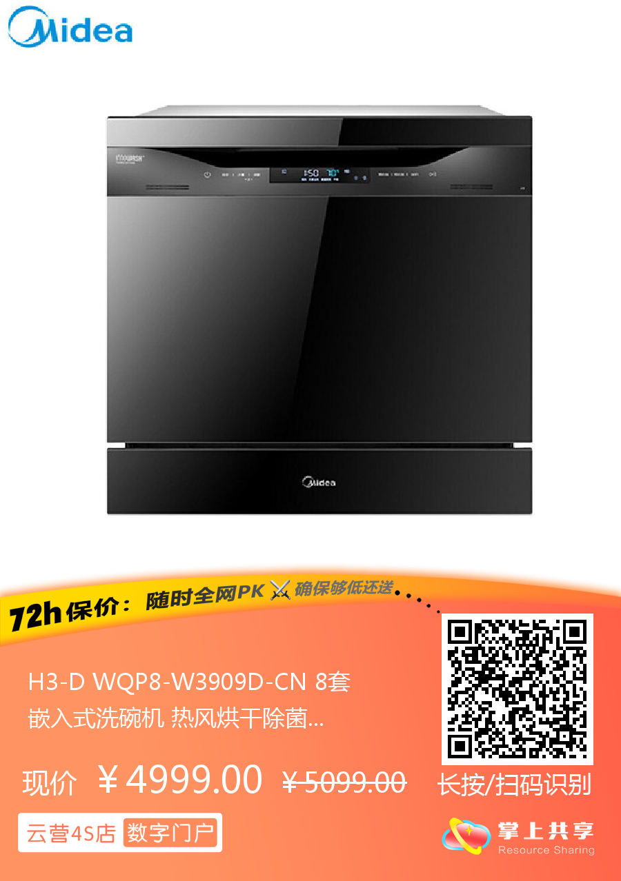 H3-D WQP8-W3909D-CN 8套嵌入式洗碗机 热风烘干除菌