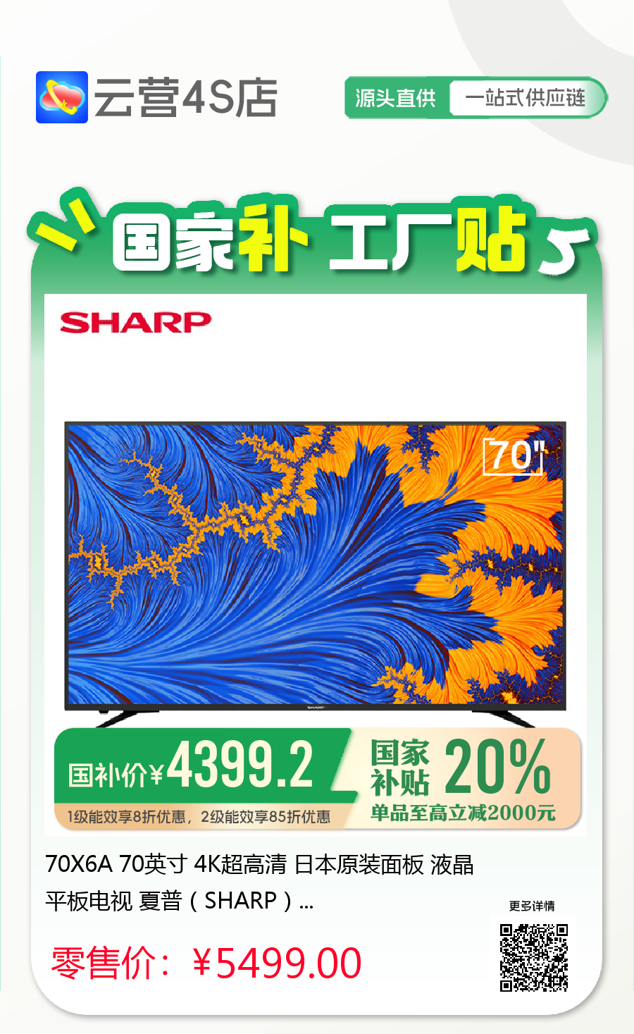 夏普电视~「云营4S店❃无界直营」
