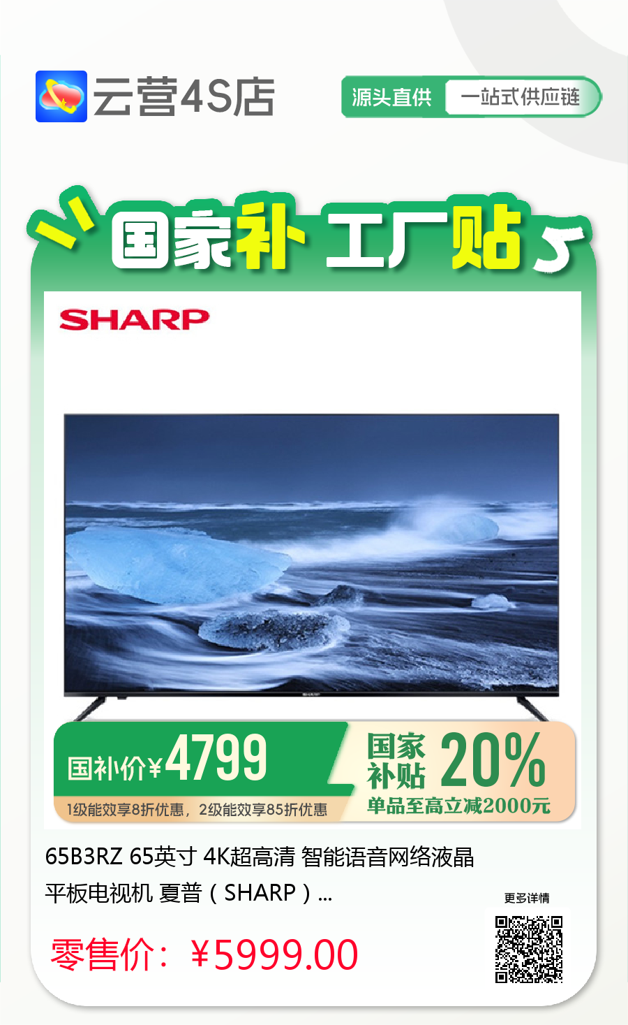 65B3RZ 65英寸 4K超高清 智能语音网络液晶平板电视机 夏普(SHARP)