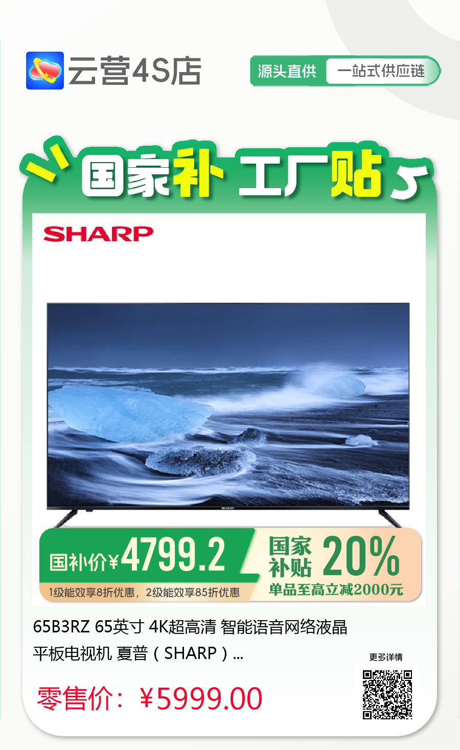 65B3RZ 65英寸 4K超高清 智能语音网络液晶平板电视机 夏普(SHARP)