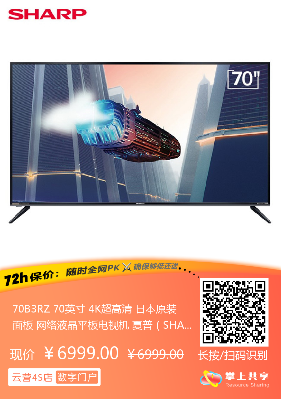 70B3RZ 70英寸 4K超高清 日本原装面板 网络液晶平板电视机 夏普(SHARP)