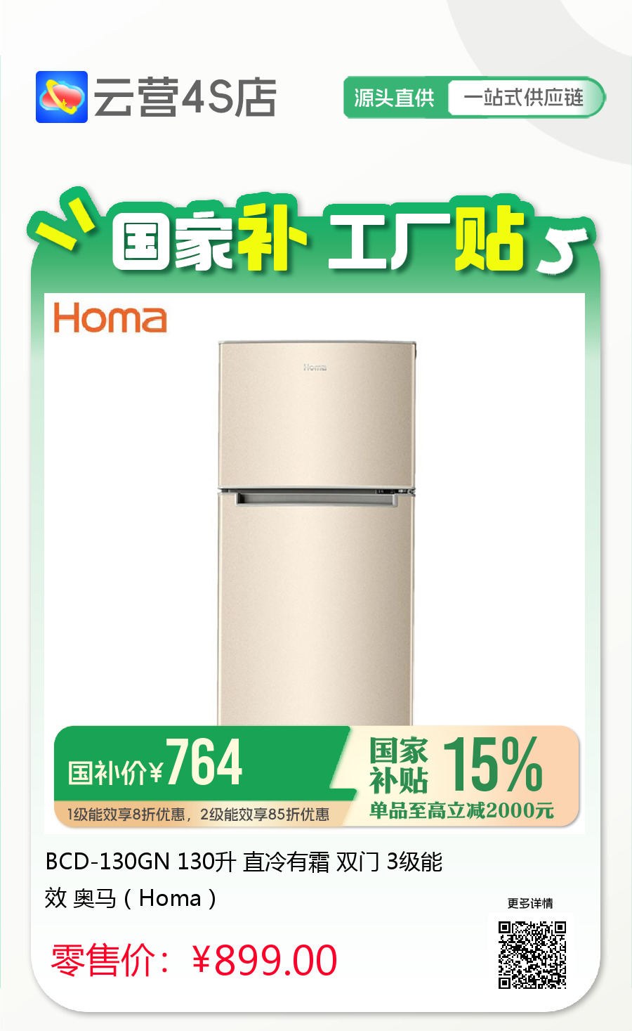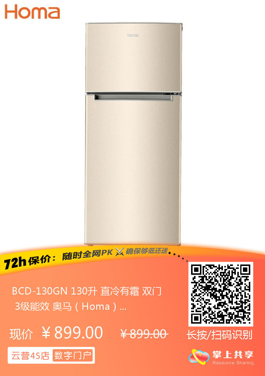 BCD-130GN 130升 直冷有霜 双门 3级能效 奥马(Homa)