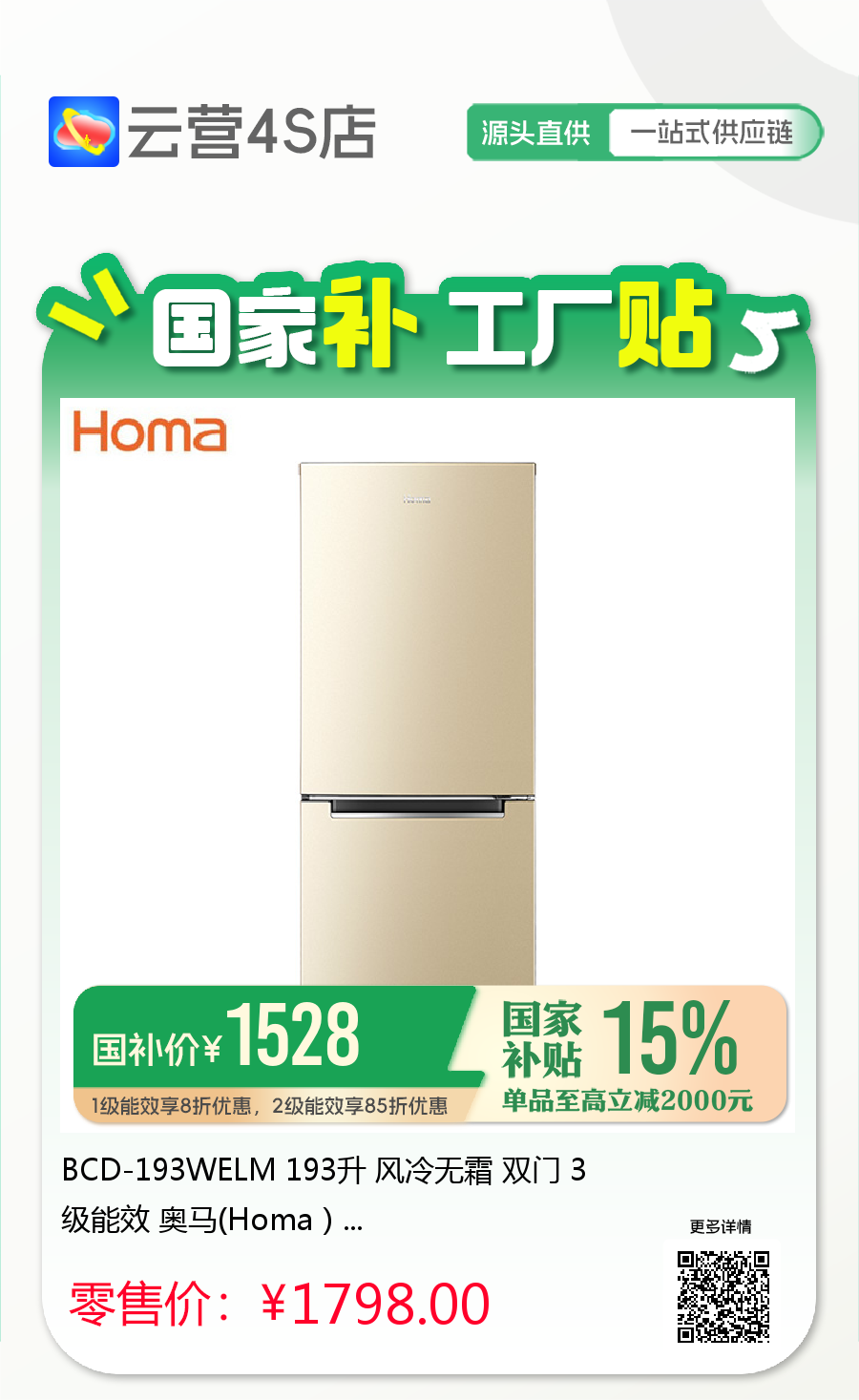 奥马冰箱~「云营4S店❃无界直营」